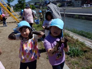 どろんこおばけになって年少さんと追いかけっこを楽しむ姿もありました。