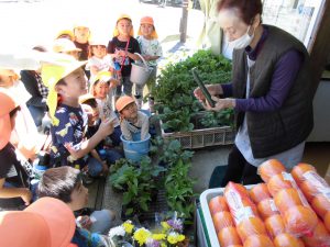・苗を買うことを伝えると、子ども同士で相談を始めた。