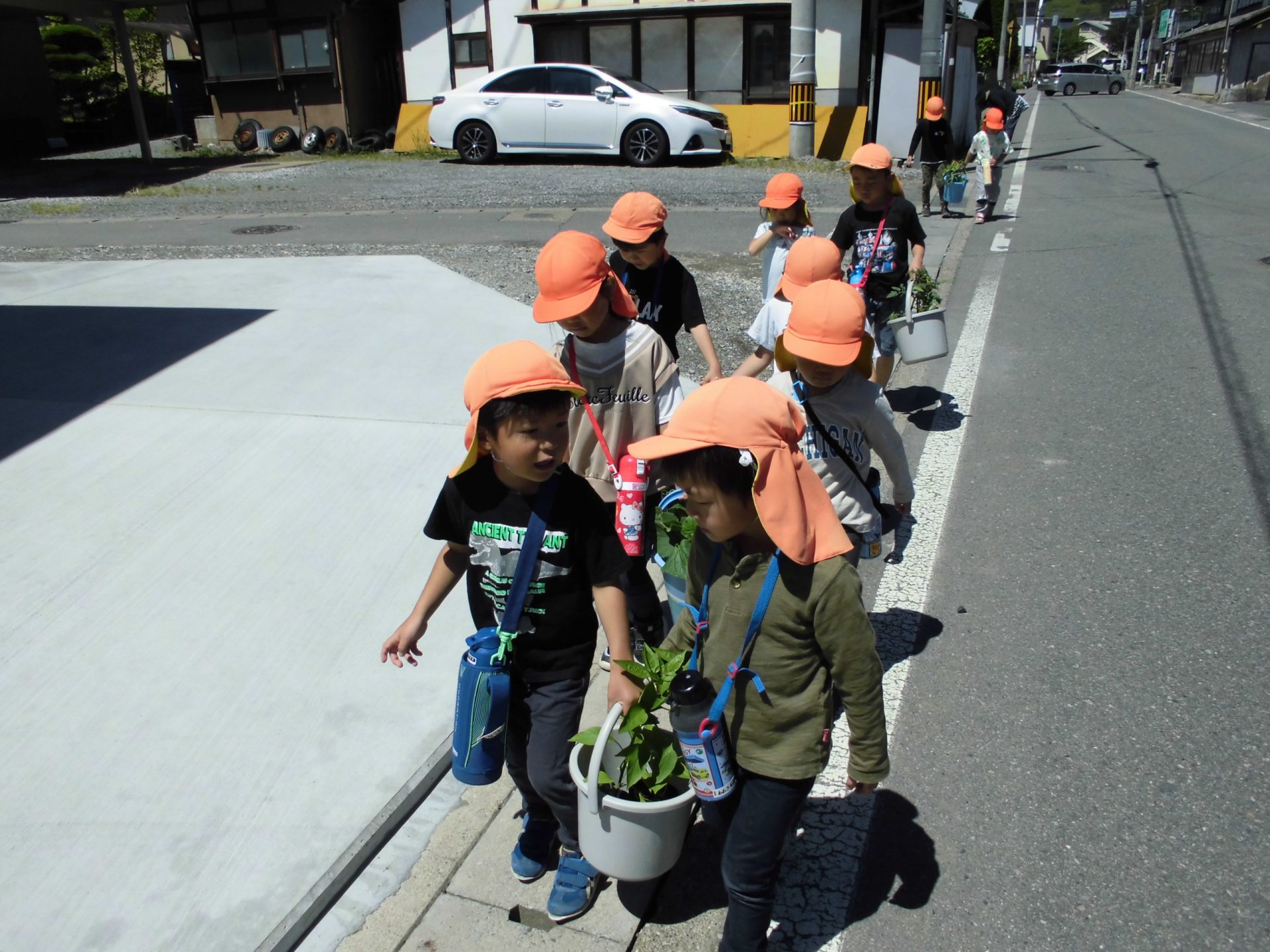 用意してもらった苗をバケツに入れると、枝が折れないように大切に持って帰りました。