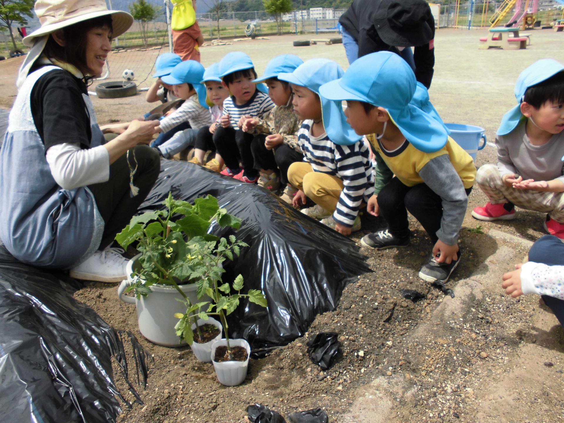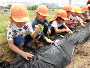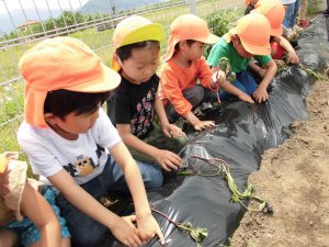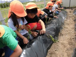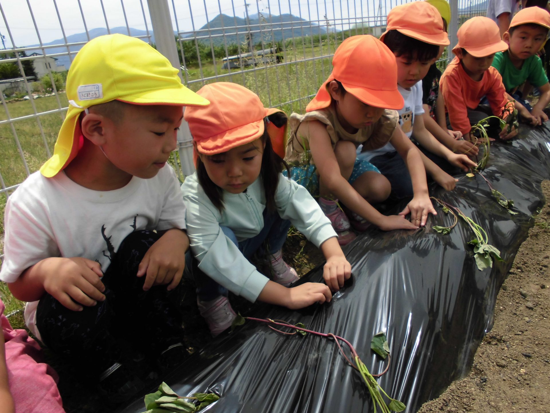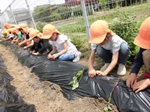 さつまいもの苗植えは、去年経験したことを覚えていて上手に植えていました。