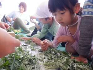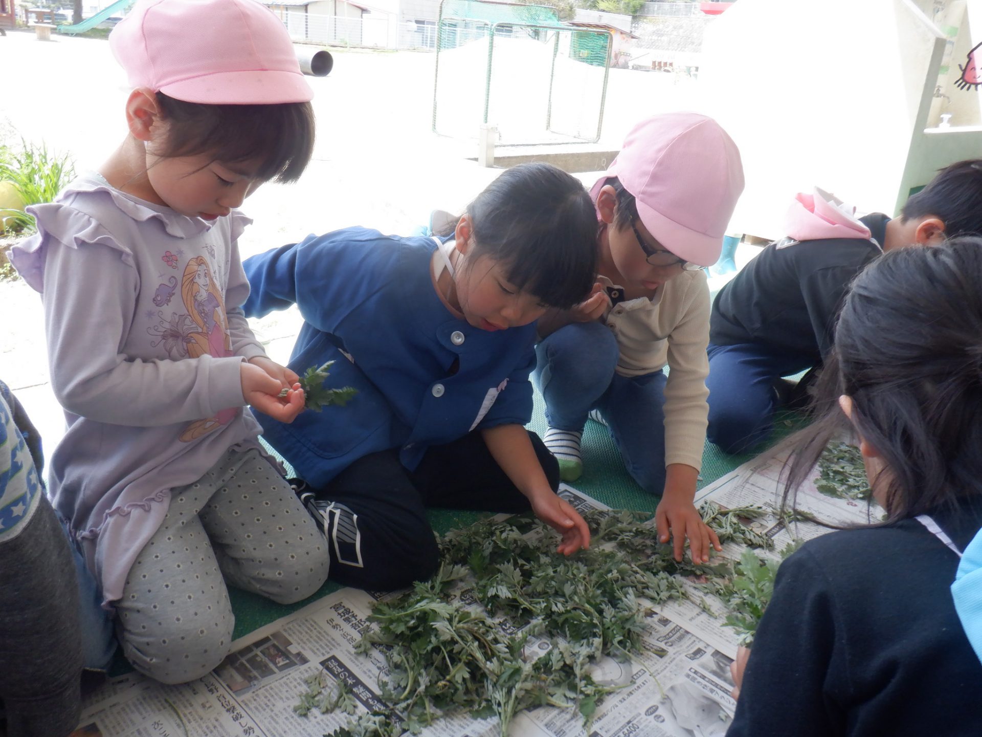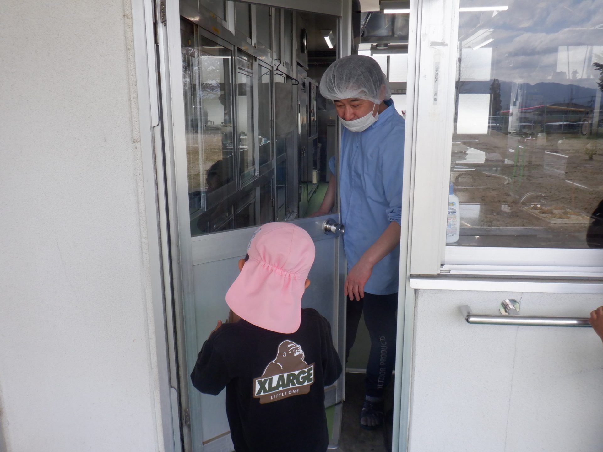 給食先生に「明日のヨモギおやきに使ってください。」とお願いしました。