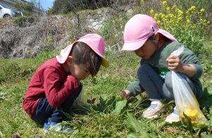 令和6年度がスタートして1ヶ月あまり。子ども達はもうすっかり園生活にも慣れ、毎日外に出て共和の自然の中で遊んでいます。