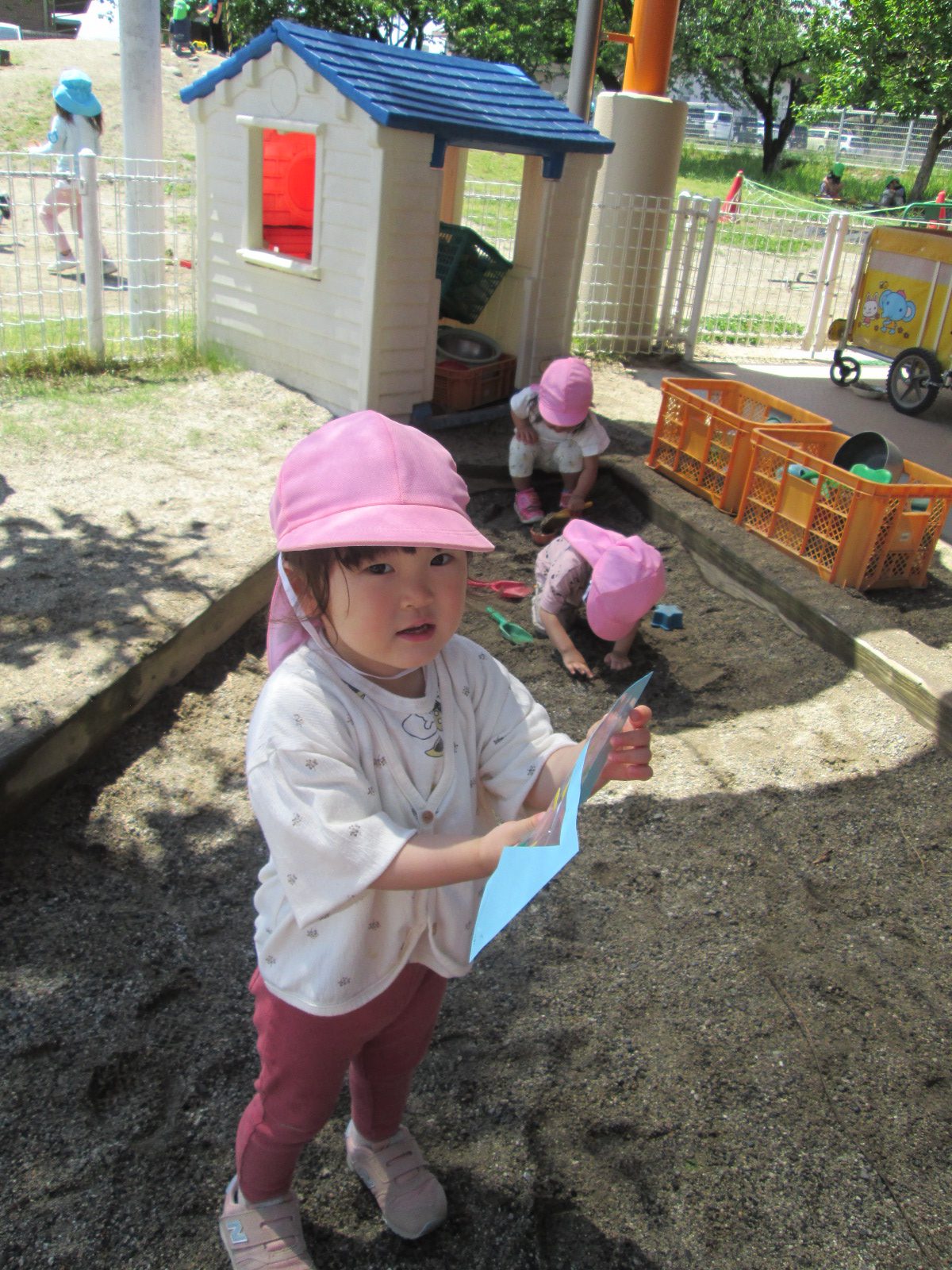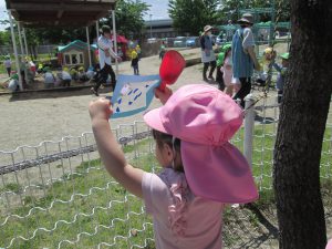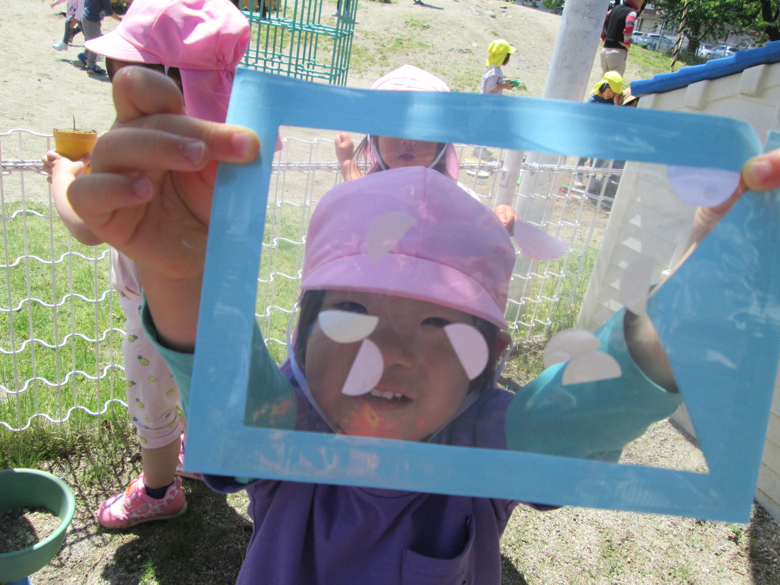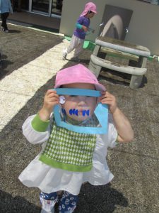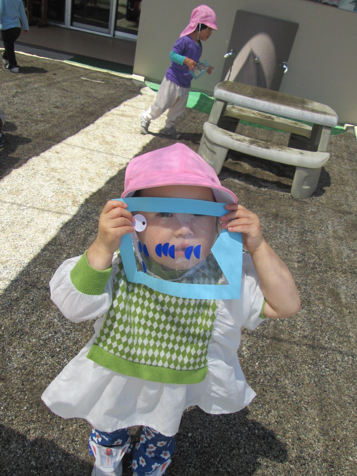 子どもたちと、大好きなこいのぼりのメガネも作り、お外でいろんなものを見て楽しんでいます。