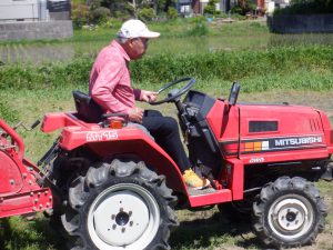 次の日畑を耕してくれる関島さんが赤いトラクターできてくださいました。