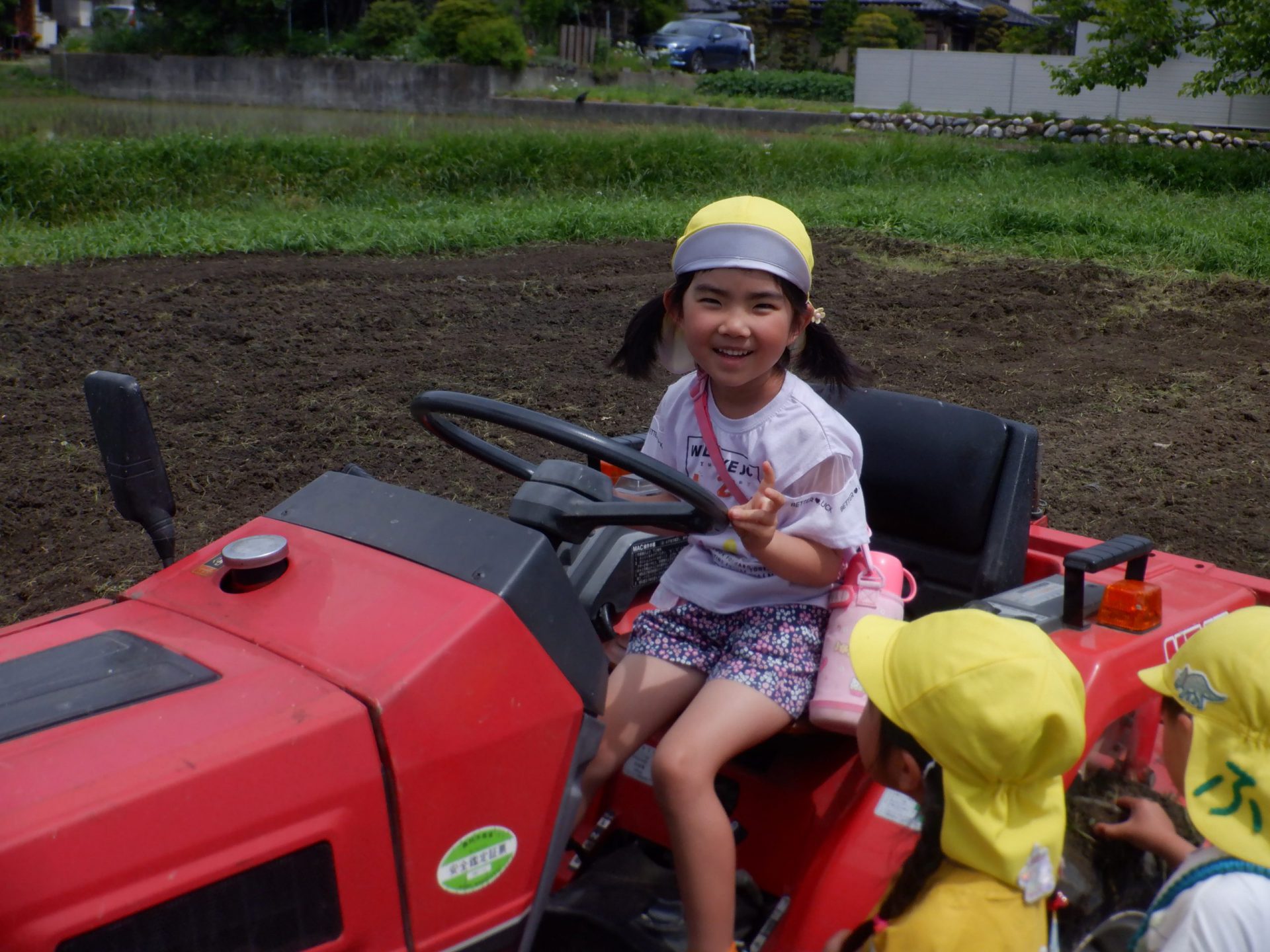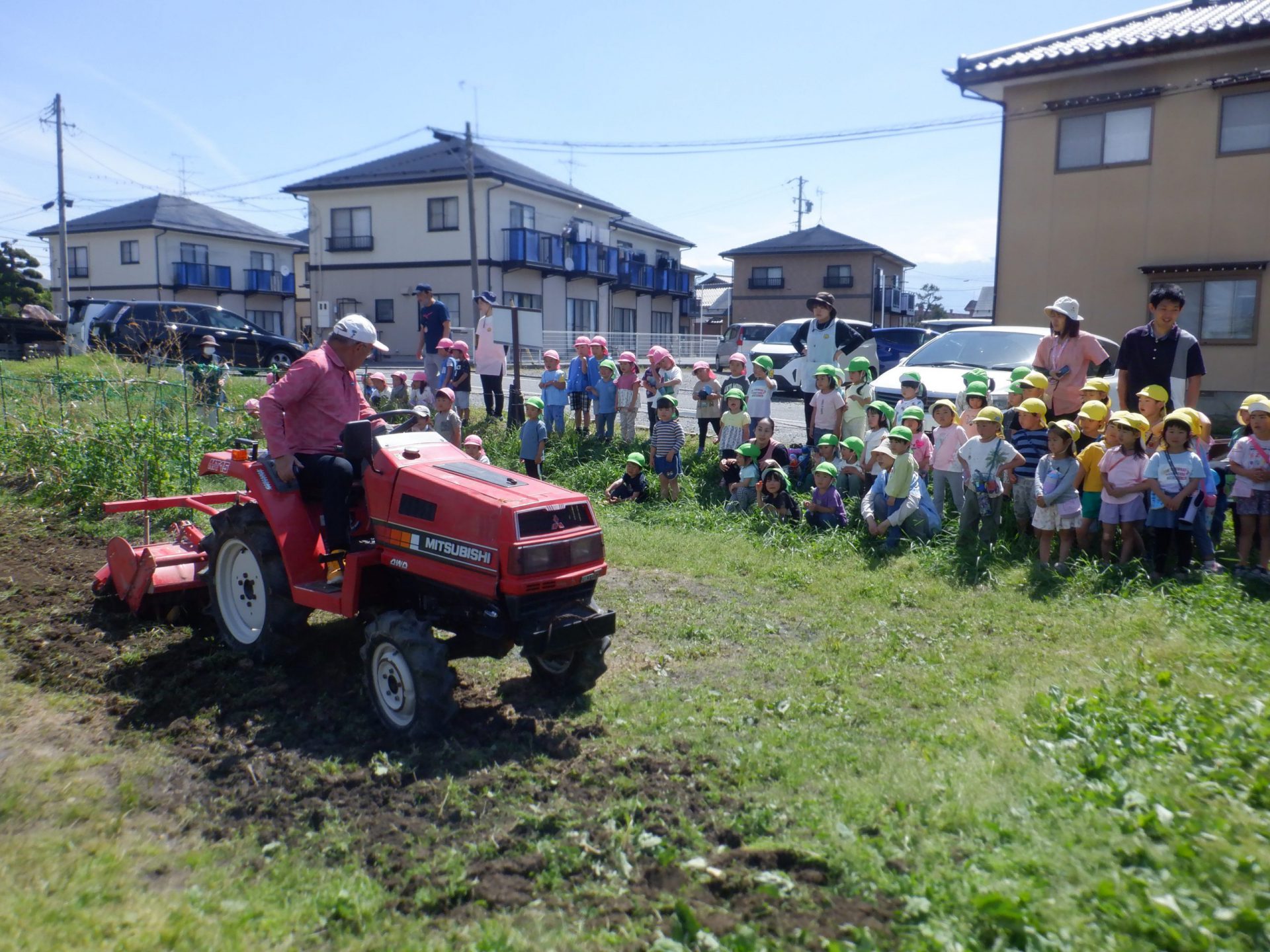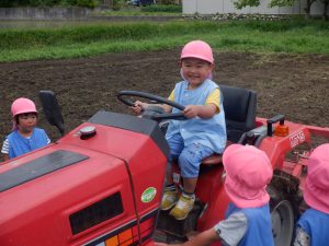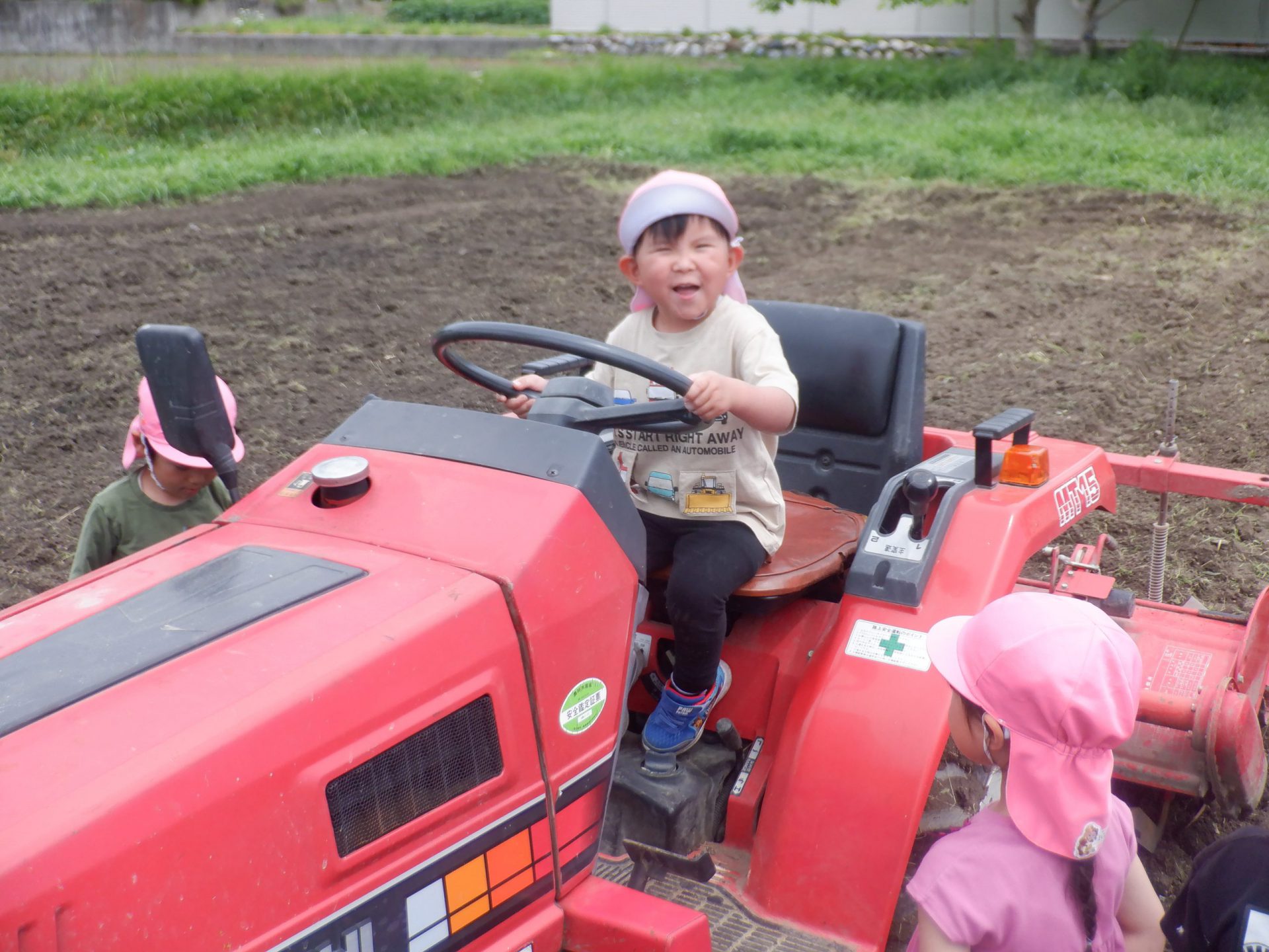 いつも子どもたちのためにと、畑を耕したり、畑で遊ばせてくださる関島さん、トラクターが動いている様子を近くで見るなど、園内ではできない経験をさせてくださること、職員だけではできない畑の土作りなども協力してくださり、ありがたいです。