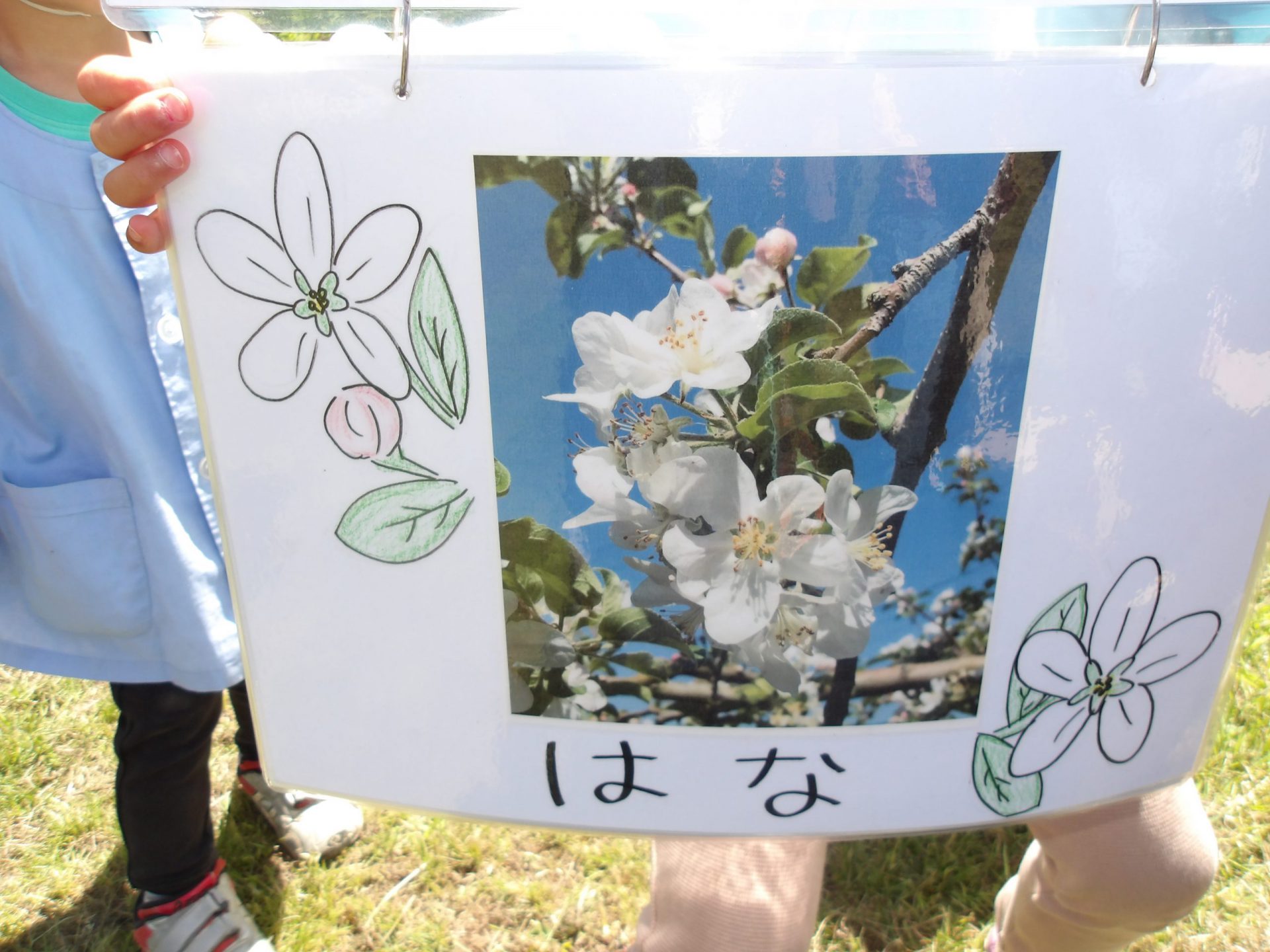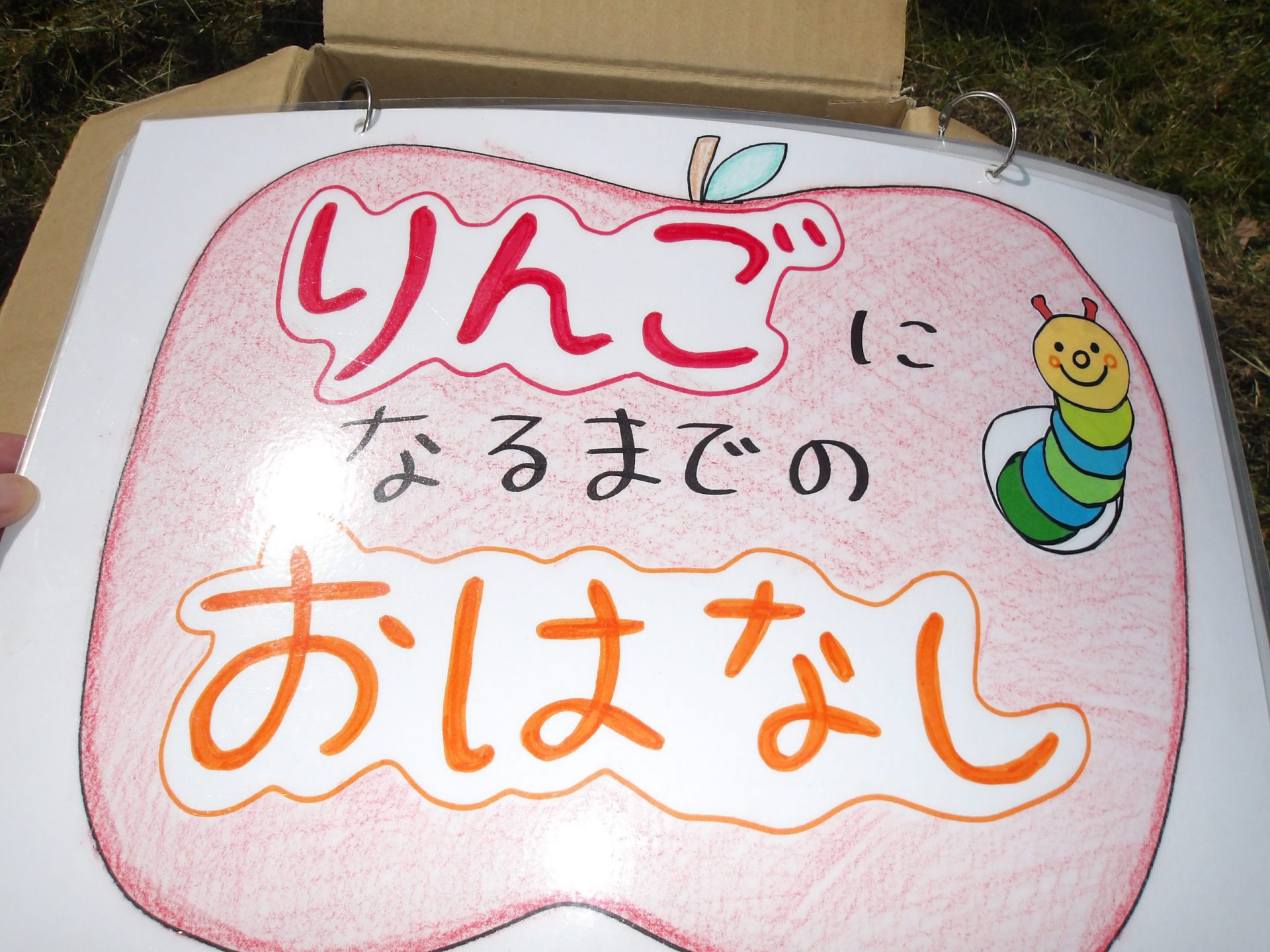 「りんごになるまでのおはなし」という手作りの紙芝居をしてくださいました。