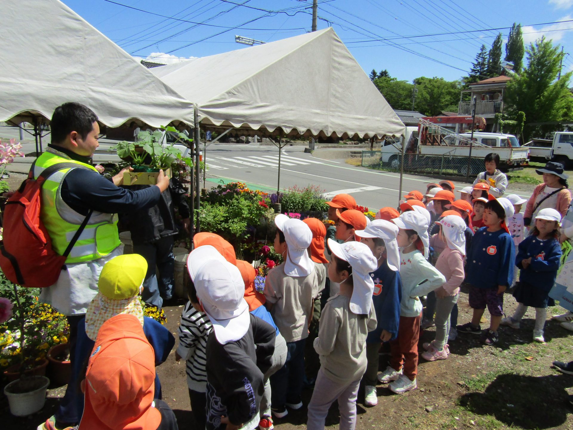 保育園の全クラスを代表して、年長さんが地域の苗屋さんにみんなの野菜の苗を買いに行って来ました!