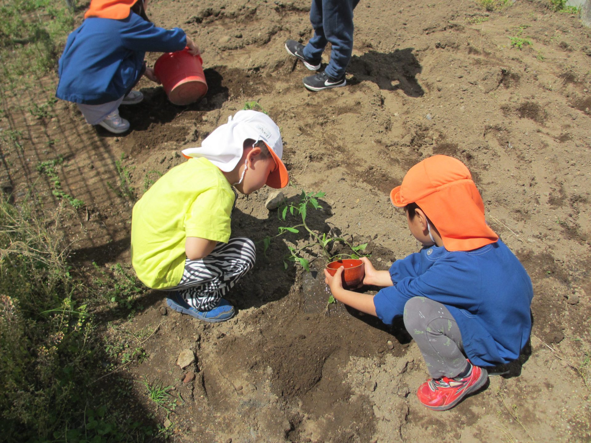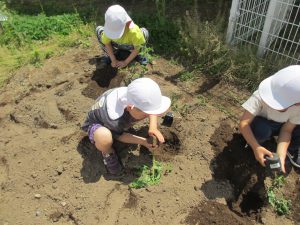 苗屋さんにも野菜が生長したところを見てもらうことや、野菜が採れたらどう食べるかを楽しみにしている子も多いので、これからも子ども達の発見に寄り添いながら、畑の活動を楽しんでいきたい。