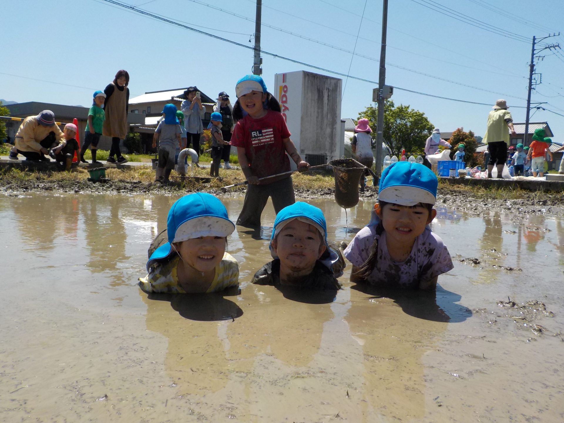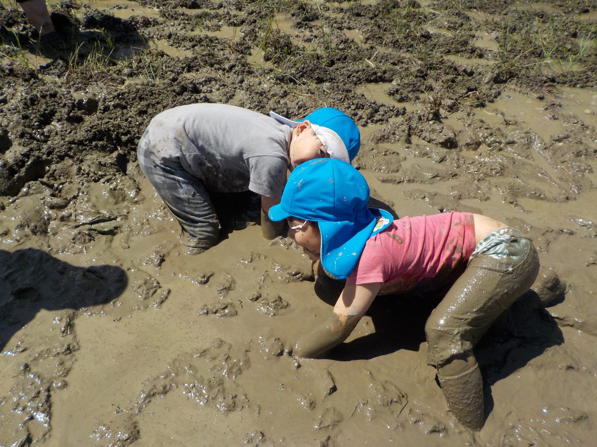 暑いくらいの天候に恵まれて、田んぼの泥んこ遊びをすることができました。