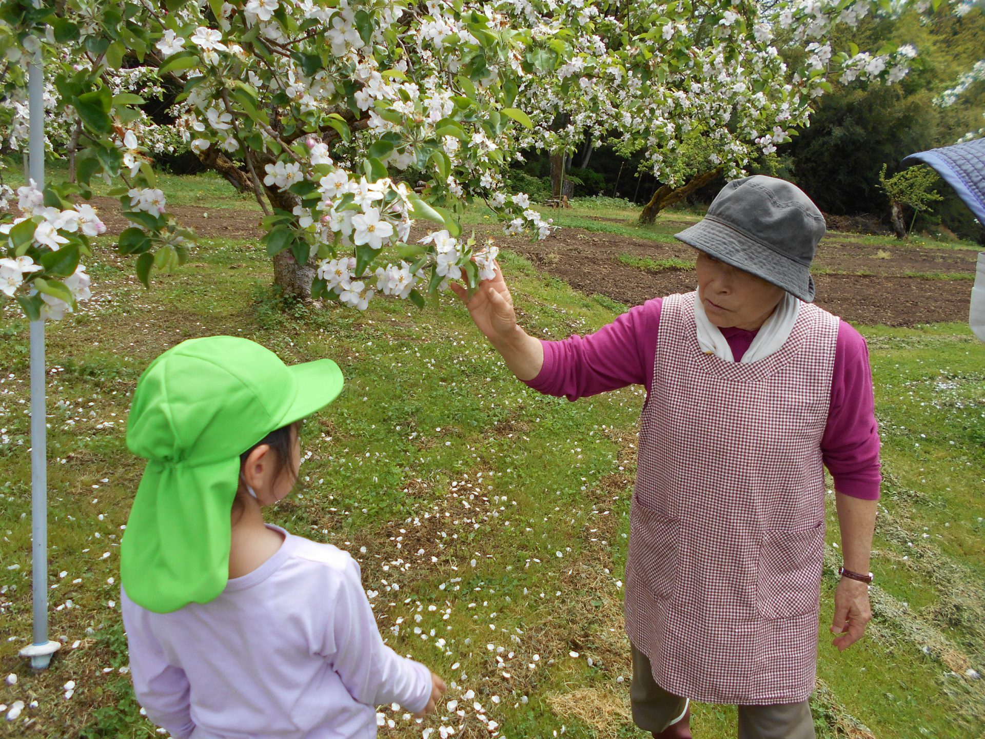 りんごの花を間近で見たり触れたりすることで、色や形の違いに気づくことができました。