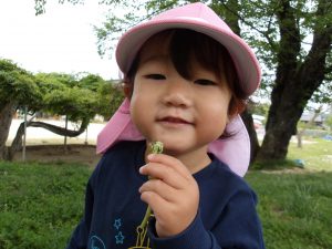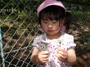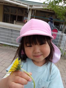 園庭にはタンポポやシロツメクサのお花がたくさん咲いていました。
