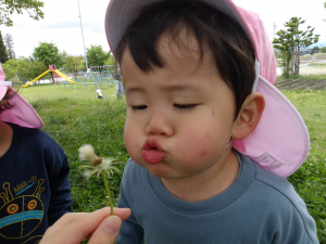 「あ、これはねタンポポのフーなんだよ。見てて、フー」