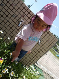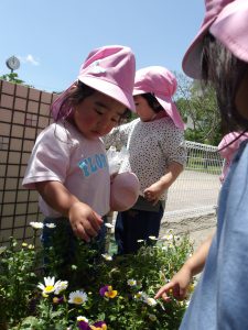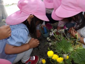 大きい園庭にはどんなお花があるのかな?ドキドキ