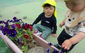 ・プランターの花々や野菜の苗など、身近な自然物に子ども自ら気付き、興味を持つ姿がありました。