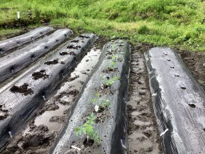 下の畑は、水田跡地で初めての畑作りであるため子ども達と話し合いをして種類多く育てることにしました。