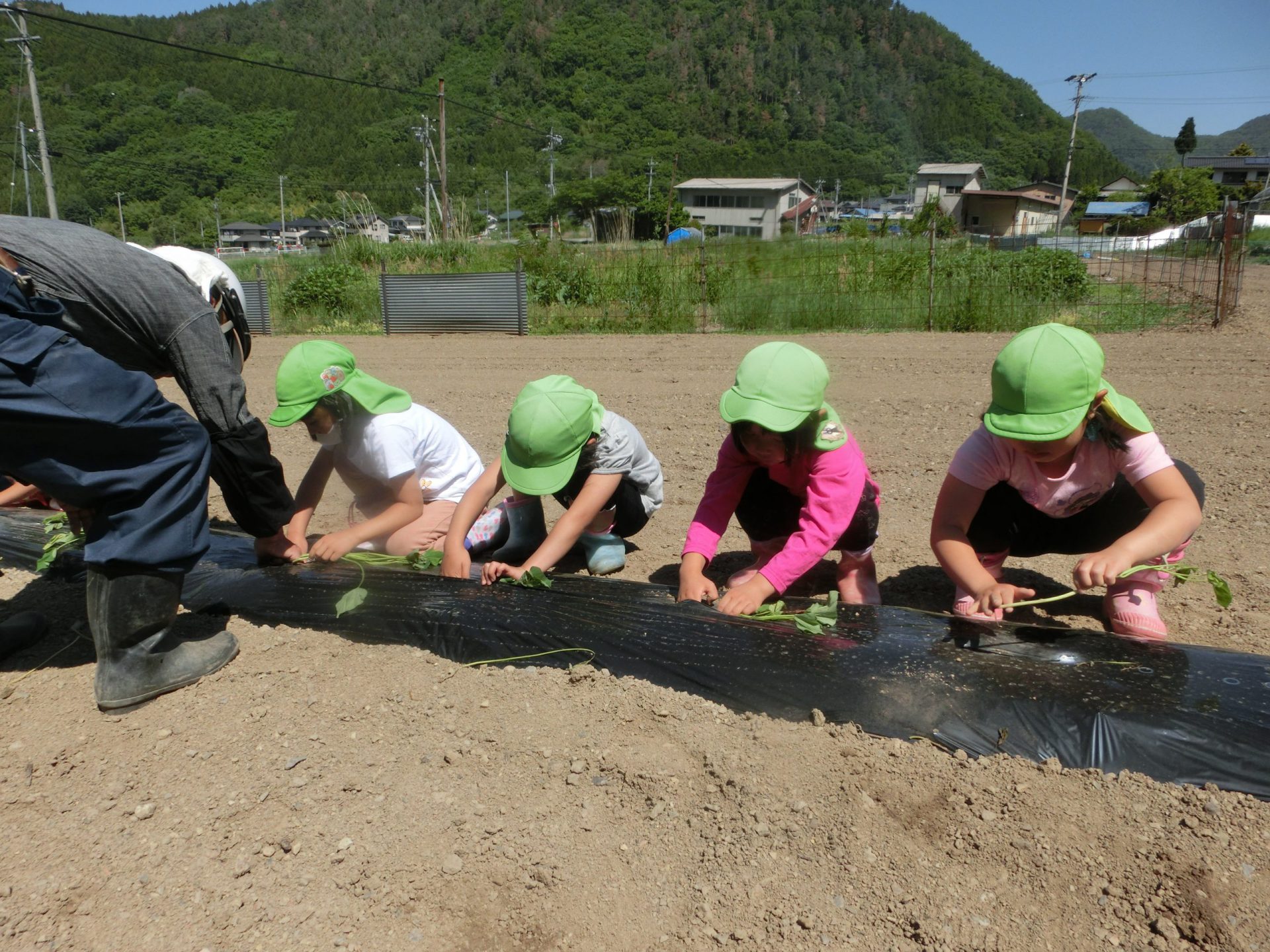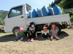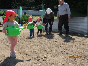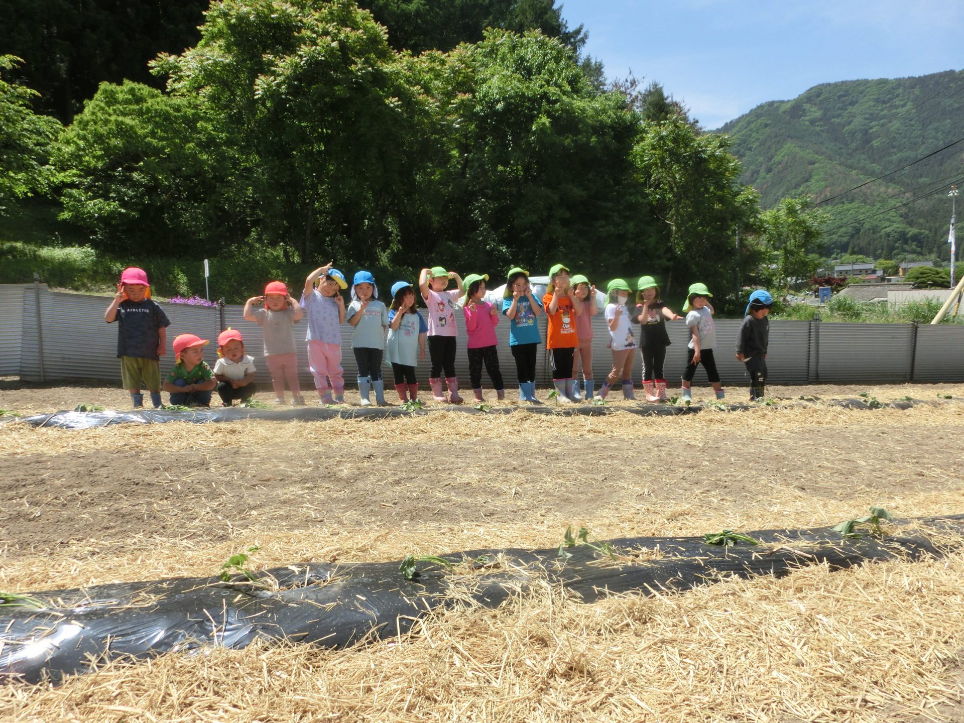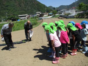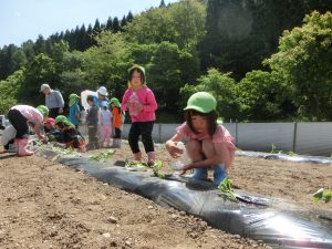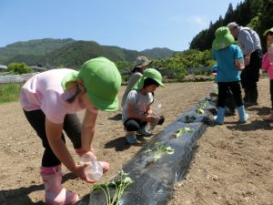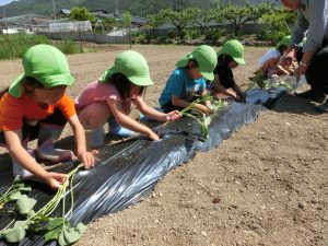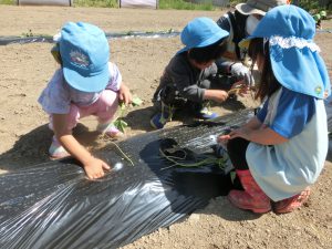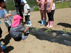 「おおきくなぁれ!」「おいしくなぁれ!」と呪文?を唱えて無事植え終わりました。