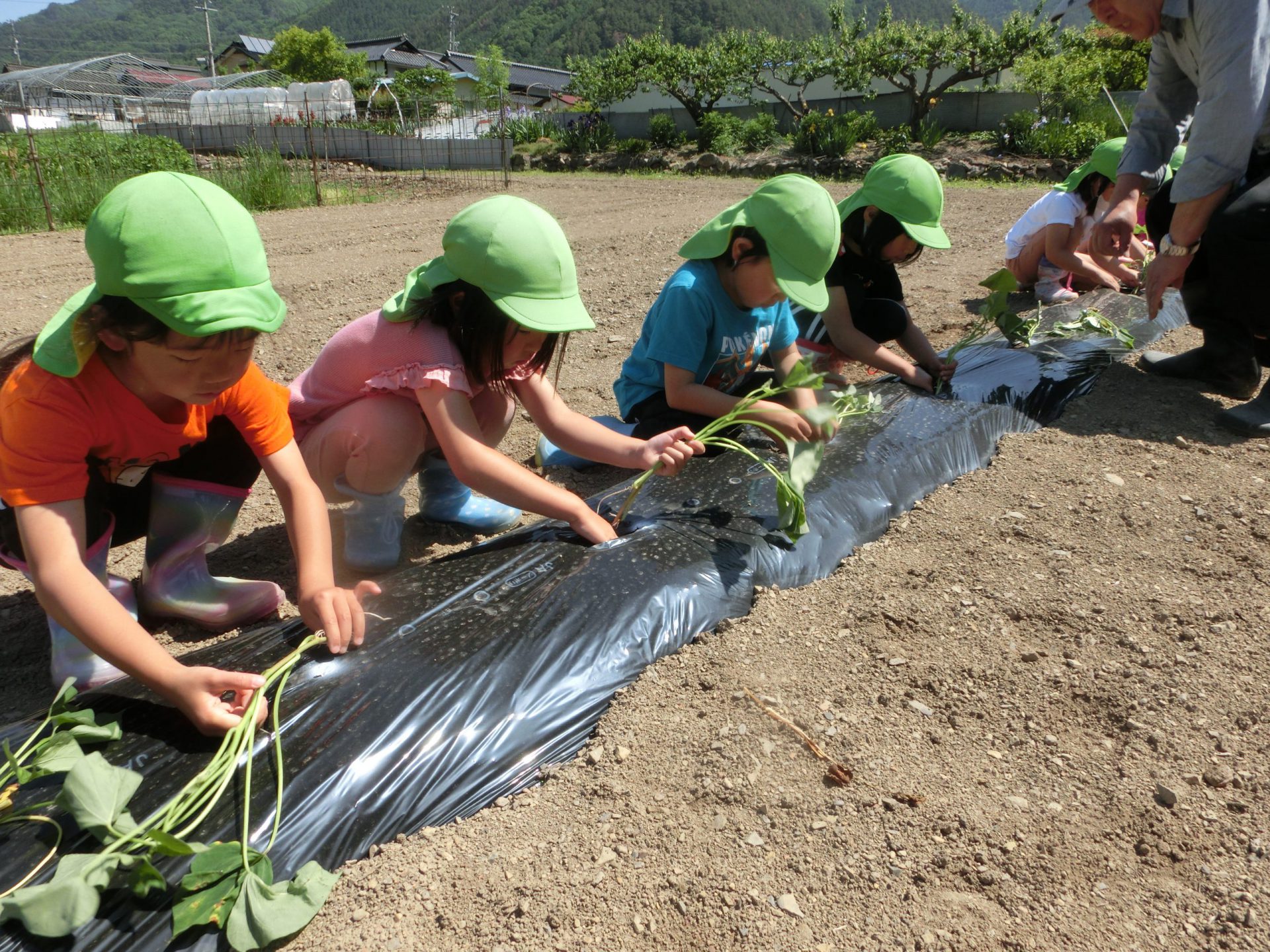 地域のボランティアさんに力を貸していただき、今年も50本のシルクスイートの苗を植えます。