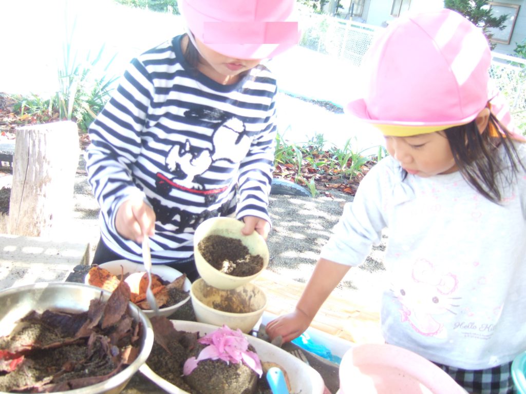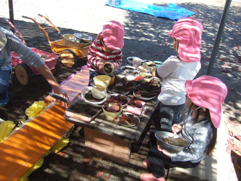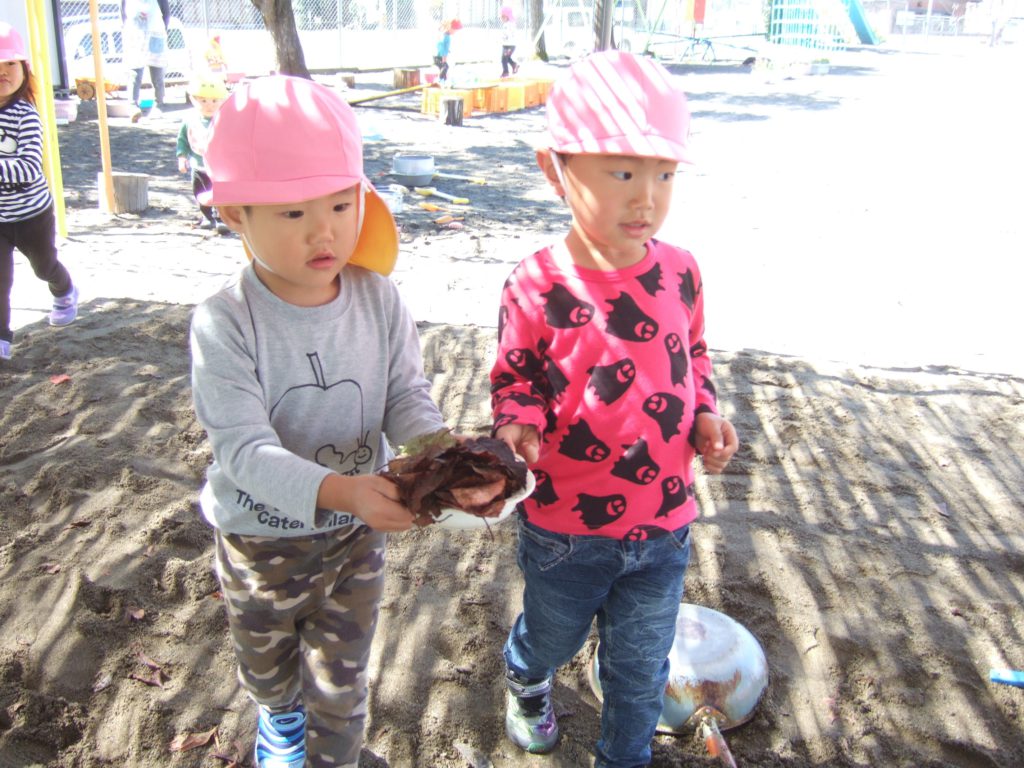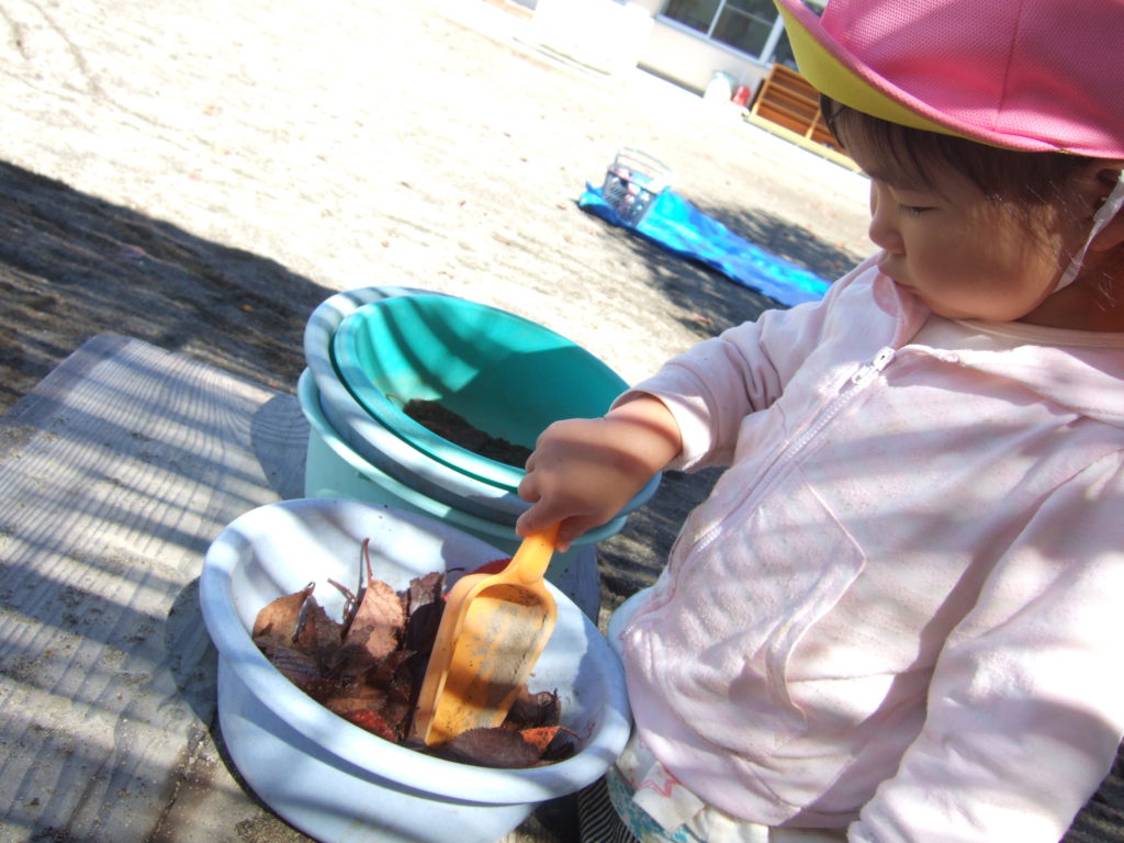 園庭には色づいた綺麗な葉っぱがたくさん落ちていました。