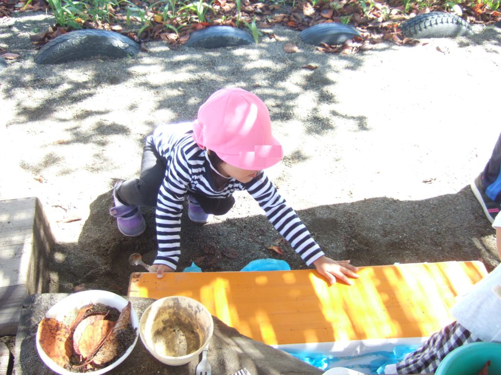 そばでおままごとをしていたお友達も自分のご馳走を並べはじめました。