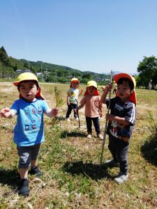 保育園のとなりのはらっぱへお散歩に行きました。広々としたはらっぱ、行く時々で子ども達の発見は様々です。