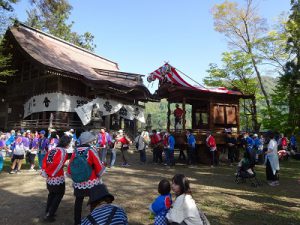 正解は「鬼無里ふるさと資料館」。お祭りのときに引いた山車以外にも何種類も保管されているそうです。