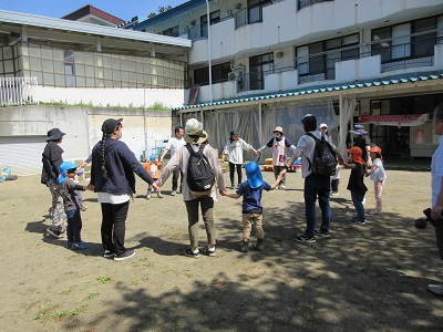 親子参加の日。普段保育園で子どもたちが楽しんでいる体操を一緒に行ったあと・・・