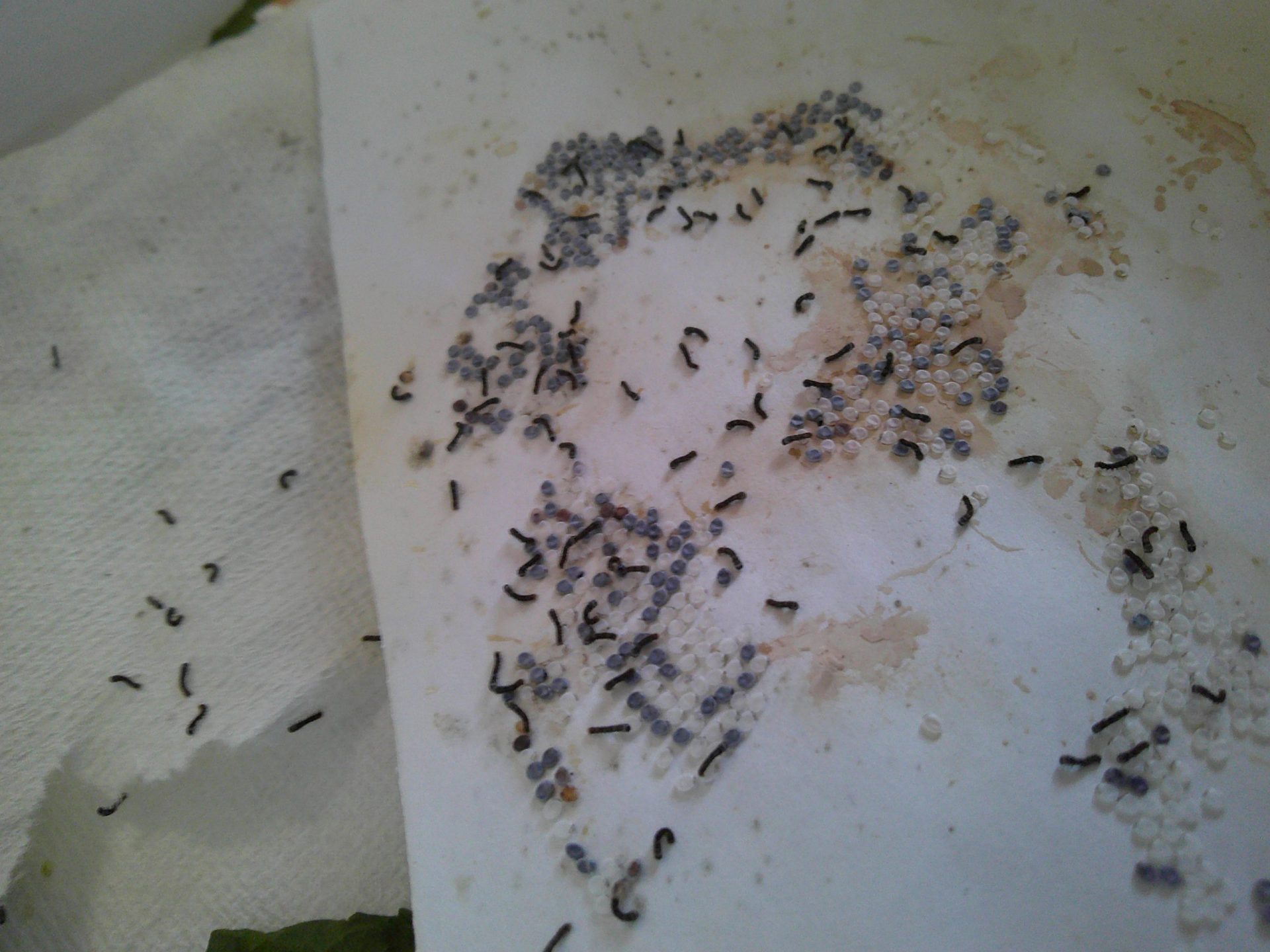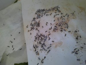 ・産まれた蚕をじっくり観察し、大きくなってきている蚕とまだ産まれたての小さい蚕がいることに気づき、