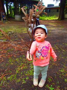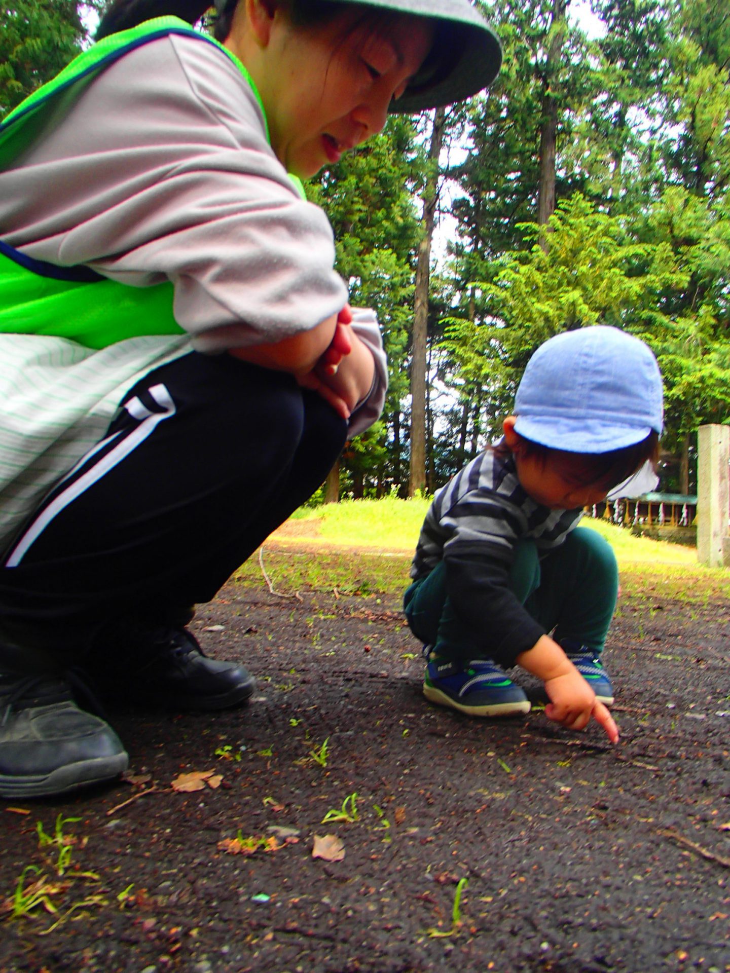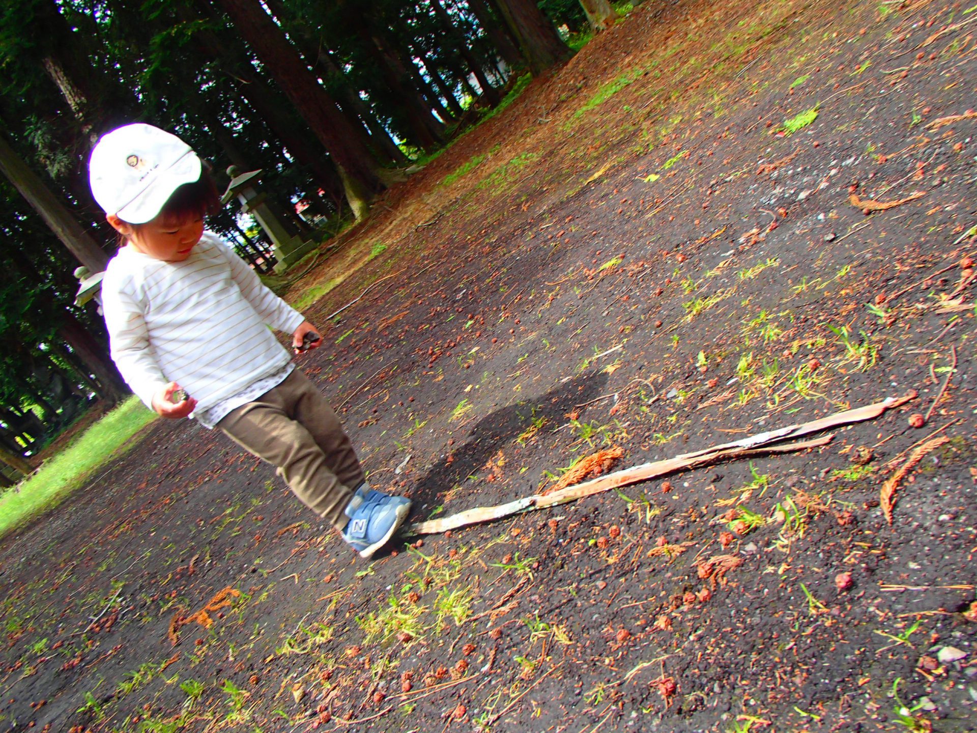 大好きなアリさん。こども園の園庭だけじゃなく、神社にもいたんだね。