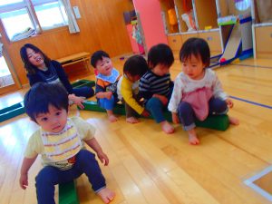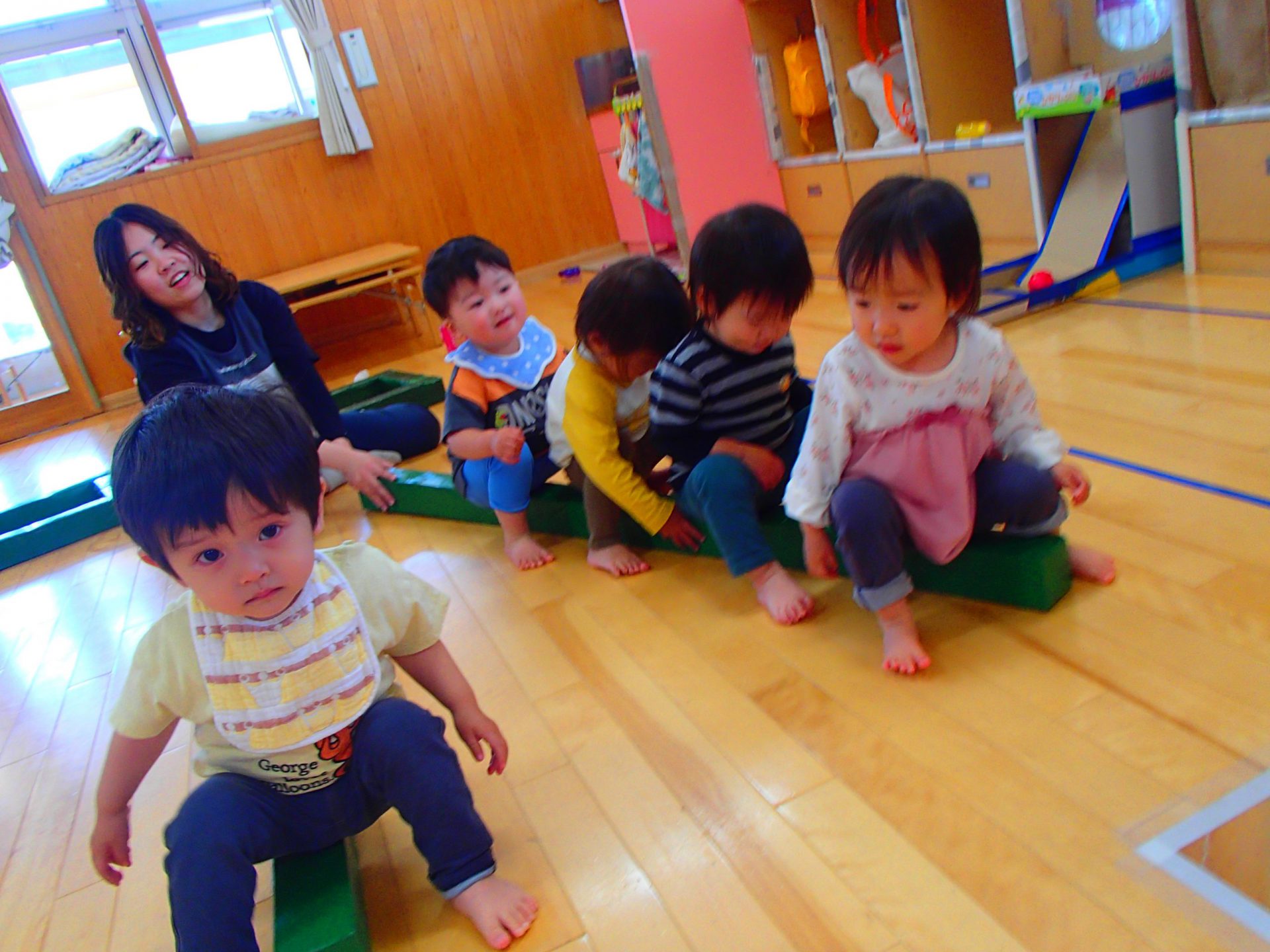 少しづつ園での生活にも慣れてきたひよこ組。お部屋や園庭で保育士と一緒に安心して遊べるようになってきました。