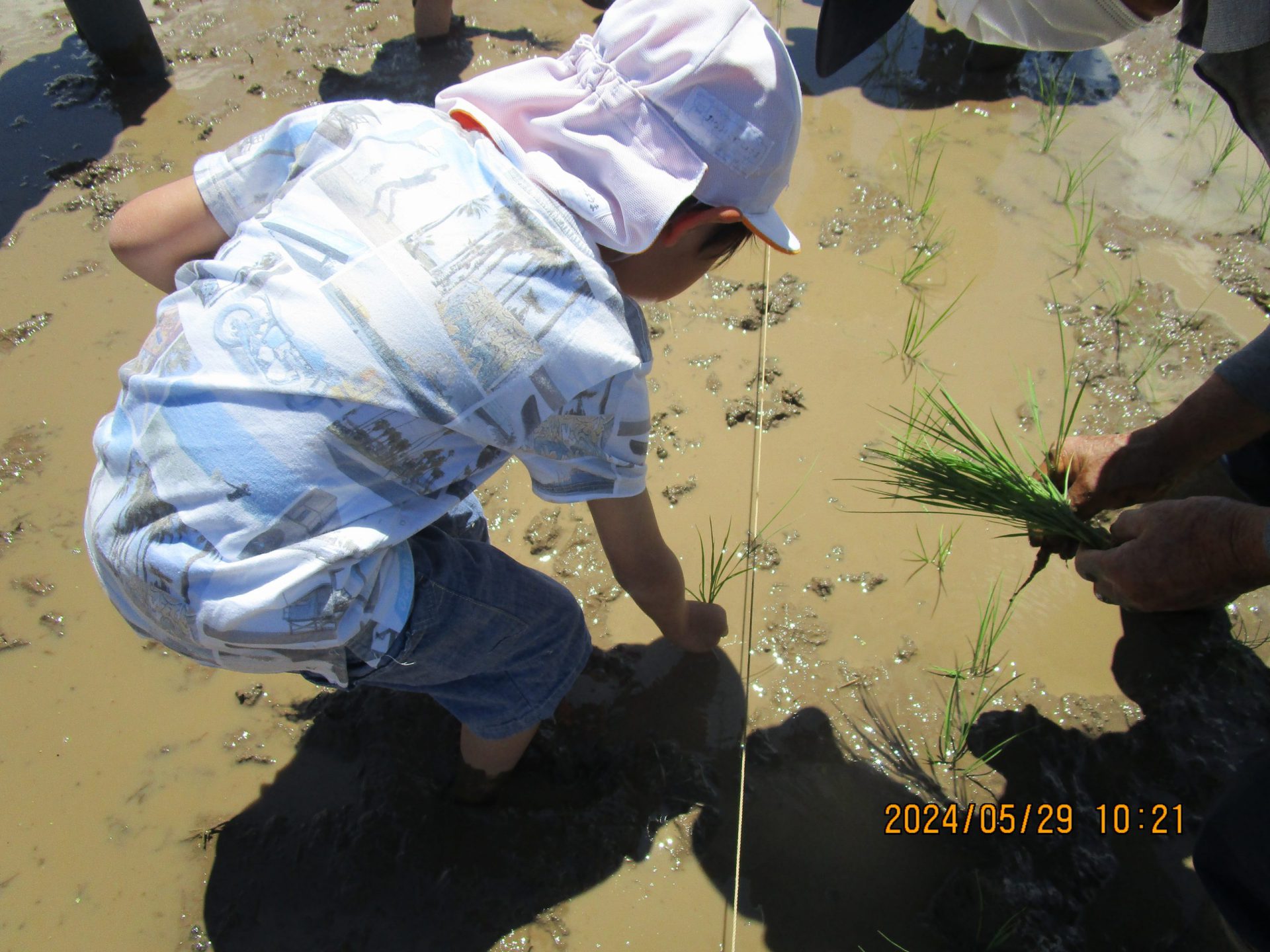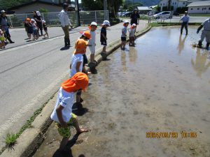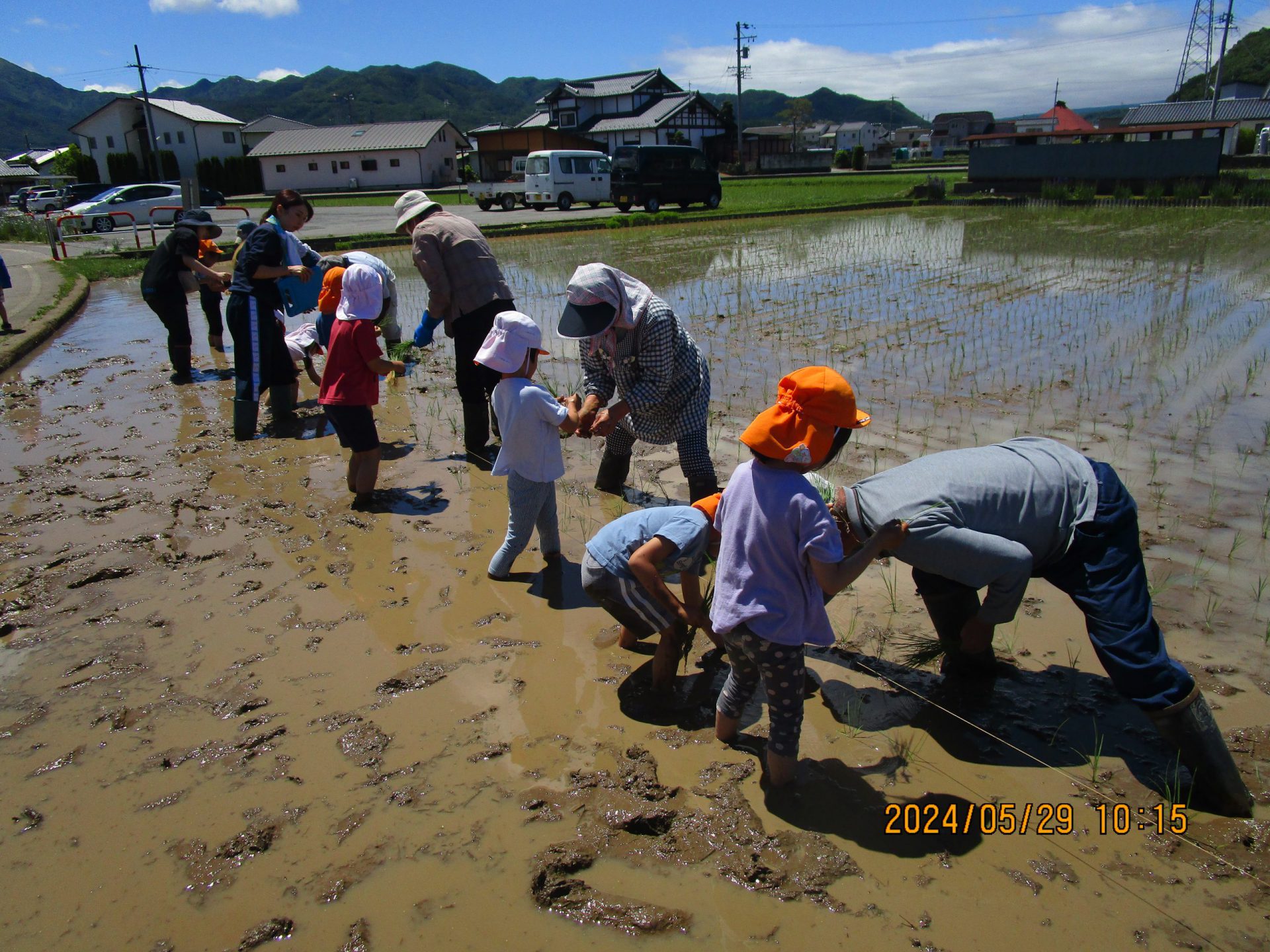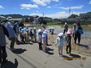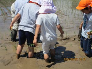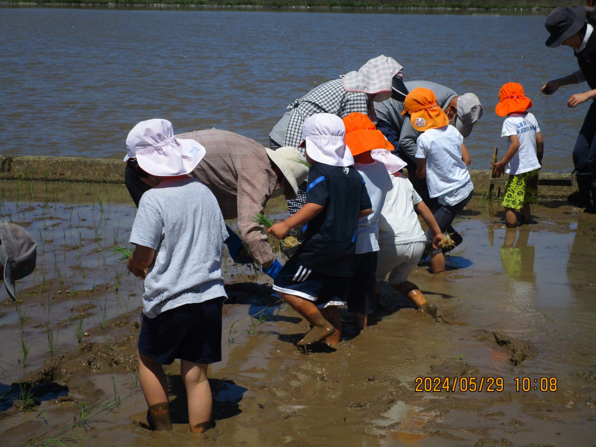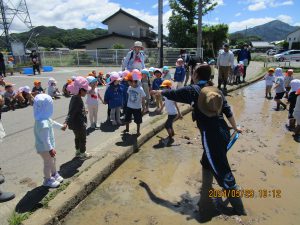 4月にこどもたちが種まきをしたお米が、芽を出し、よい大きさの苗ができたので、いよいよ田植えです