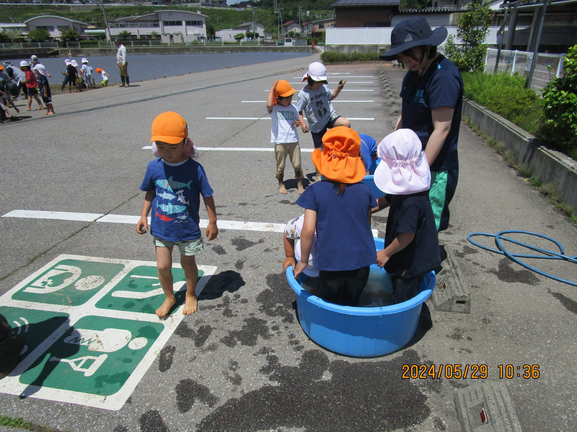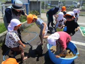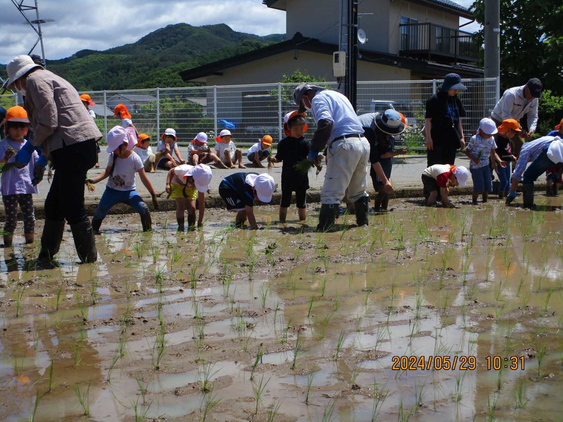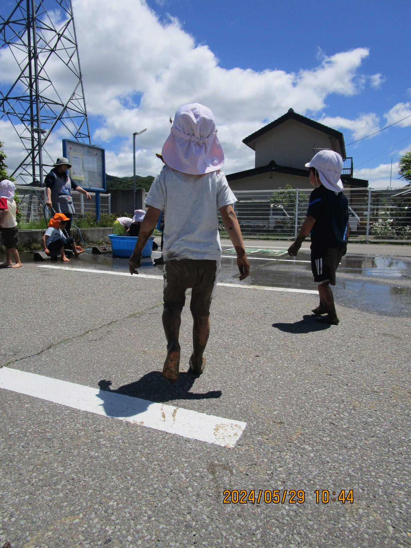 4月にこどもたちが種まきをしたお米が、芽を出し、よい大きさの苗ができたので、いよいよ田植えです