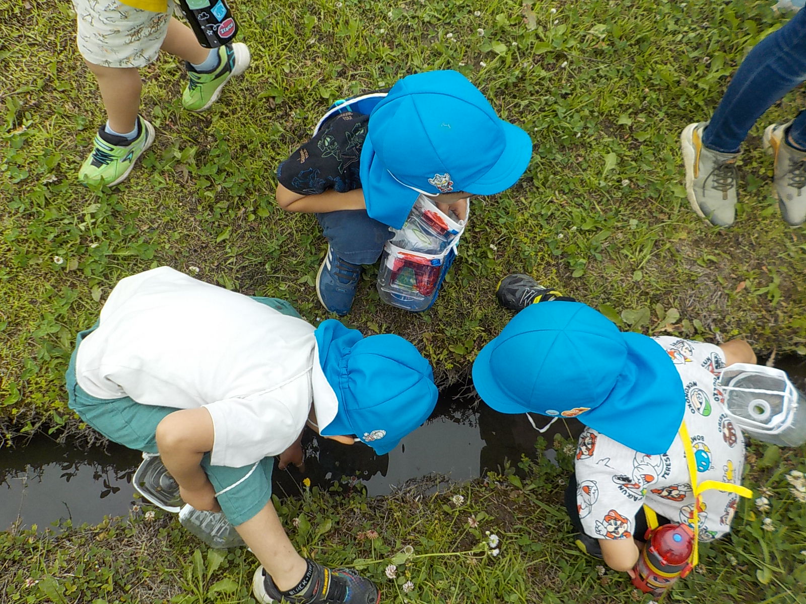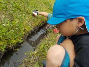 生き物大好き年長さんは、鋭く川を覗き込んでいました。