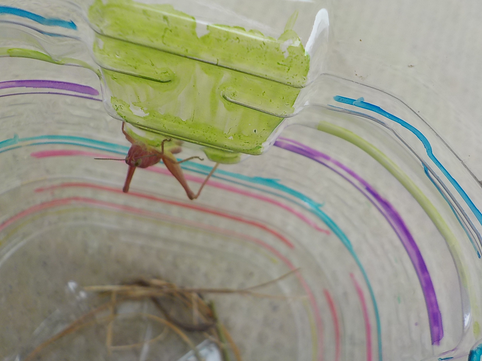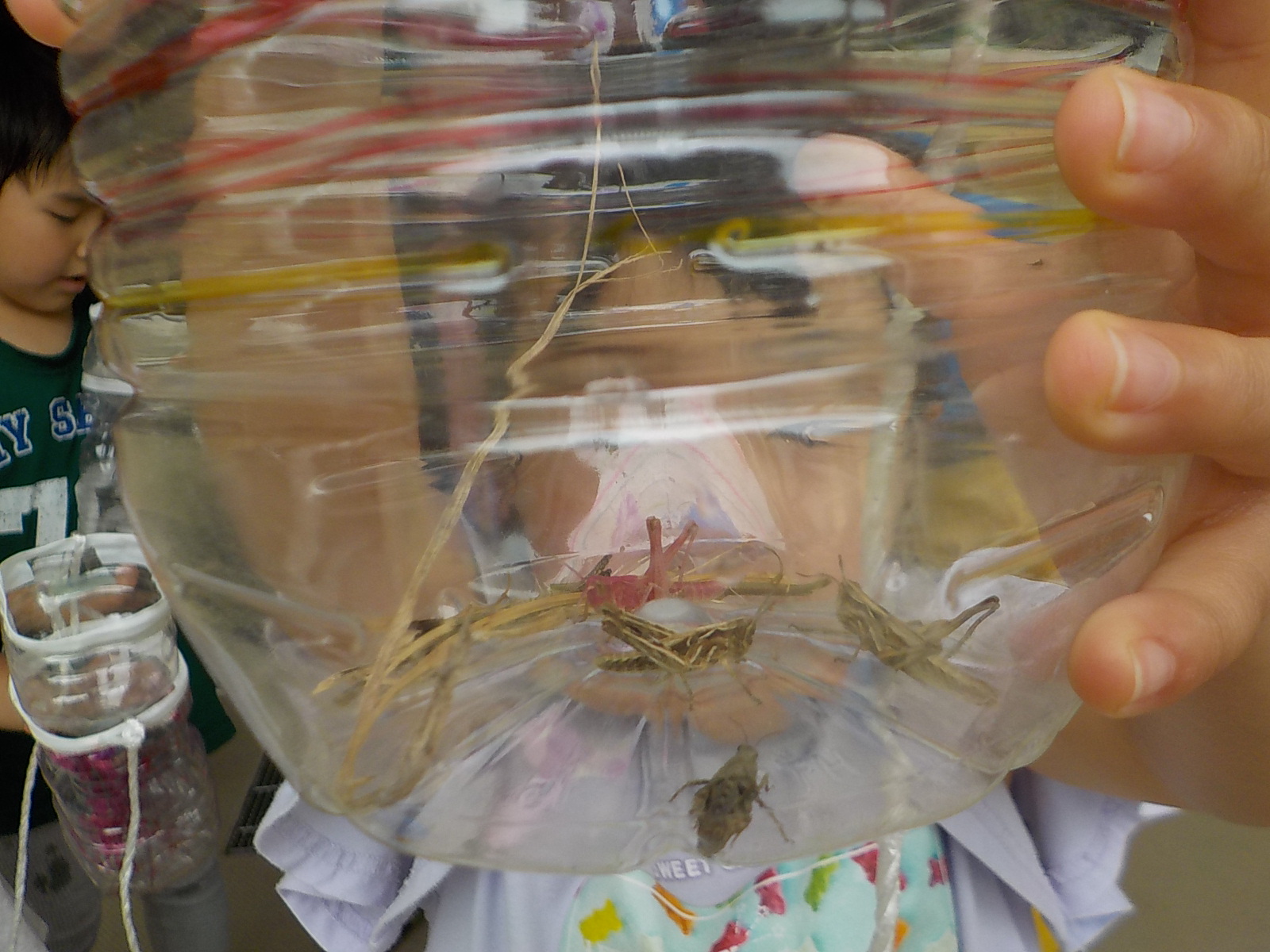 なんと、体がピンク色したバッタを発見!2匹もいました。