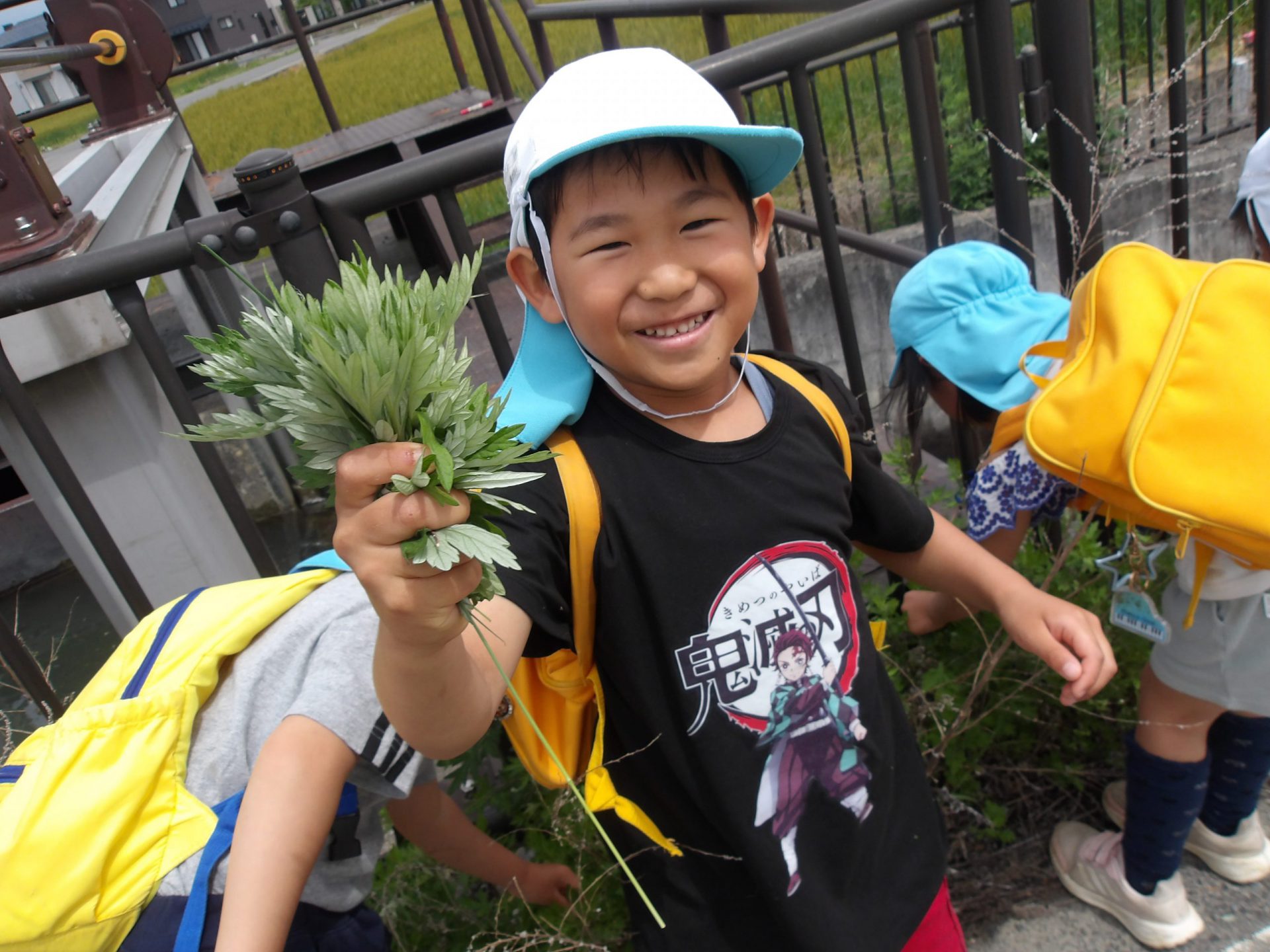 まずは、草団子作りに必要なよもぎを集めに行こう!