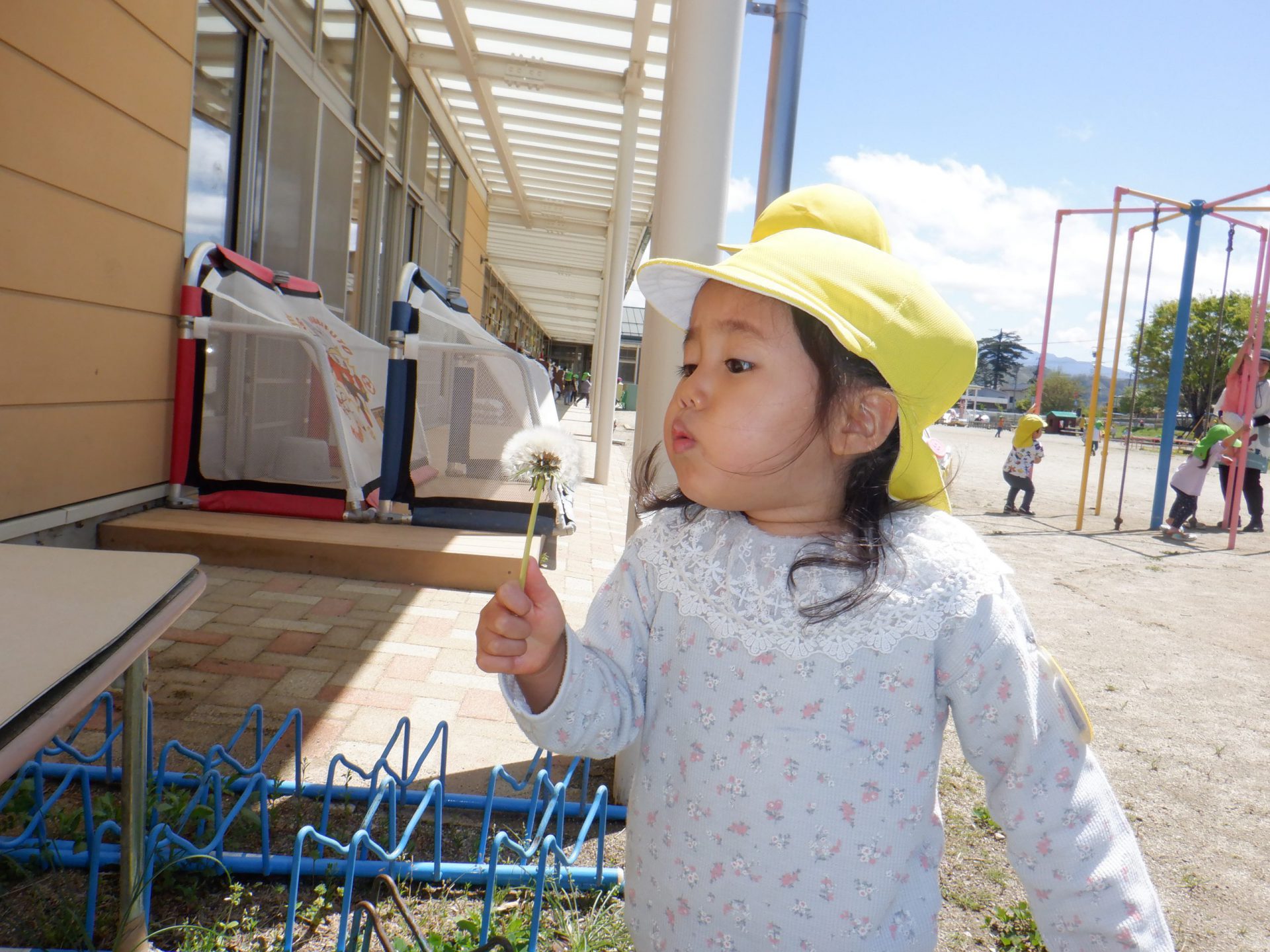 「ふわふわするの!見てて!」思いっきり綿毛を吹いて飛ぶと嬉しそう!