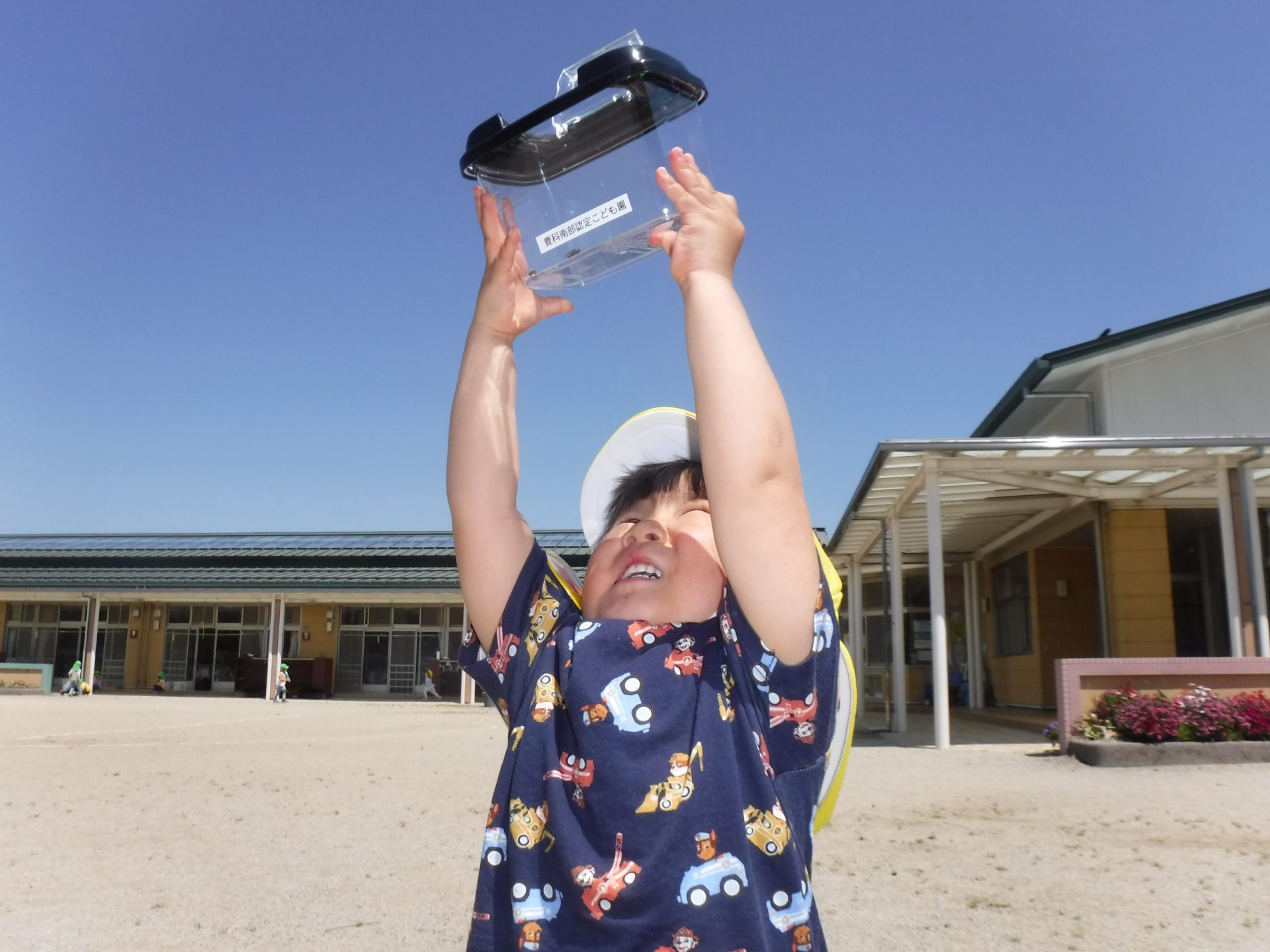 「だんごむし、3つも見つけたのー‼」虫カゴの下からだんご虫を眺めています。