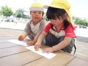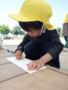 お友達の姿を見て、興味を持った子が次から次へと たんぽぽお絵かきをしに来ました。
