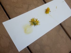 たんぽぽを大事に握っていると、手が黄色くなりました。