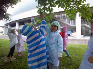 ・雨の日は室内で・・ではなく外に出ることで晴れの日との違いを見つけることができました。汚れてしまう、濡れてしまうと室内にこもりがちですが、雨の日にしかできない楽しい経験ができました。