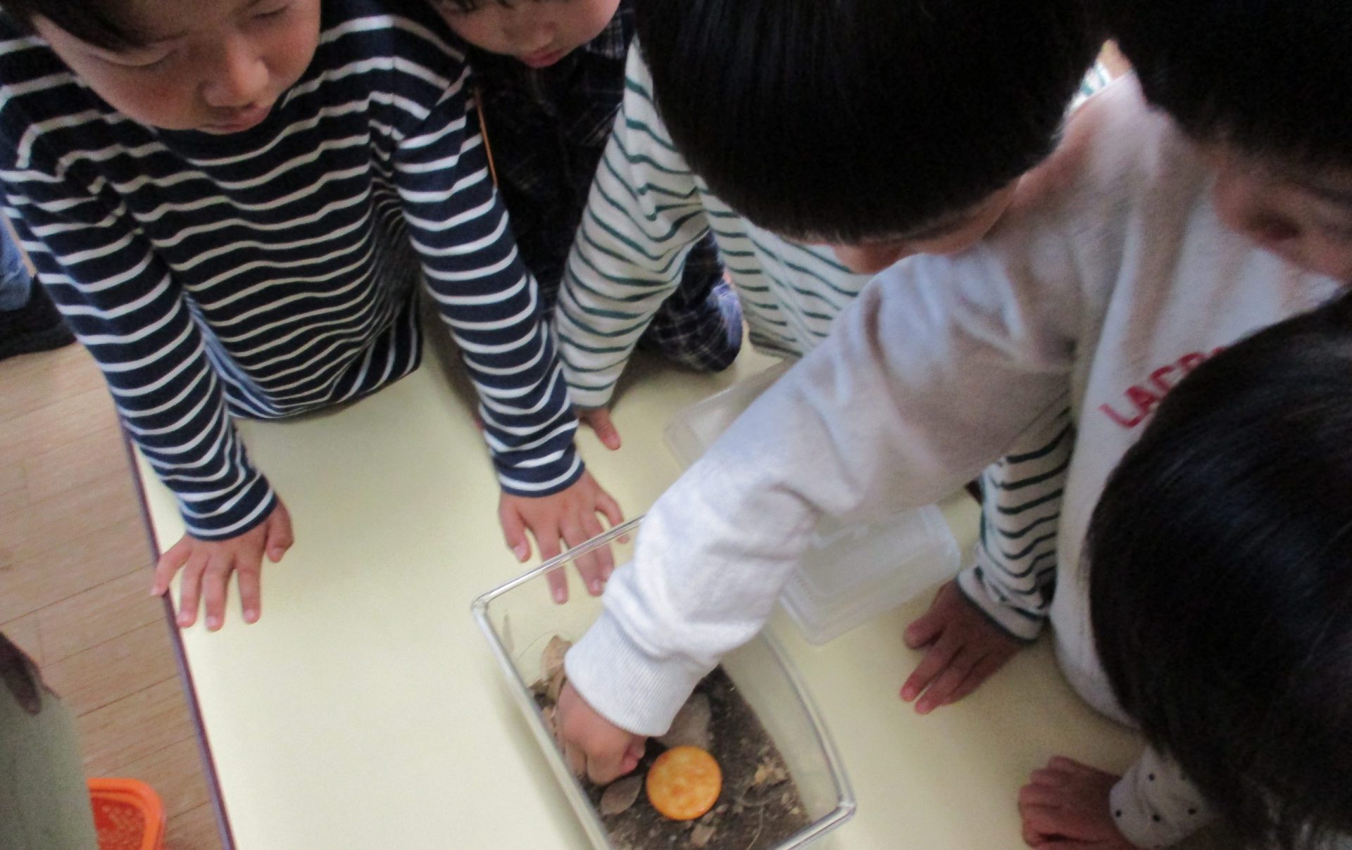 別の日、園庭で見つけただんご虫を、クラスで飼うことにしました。
