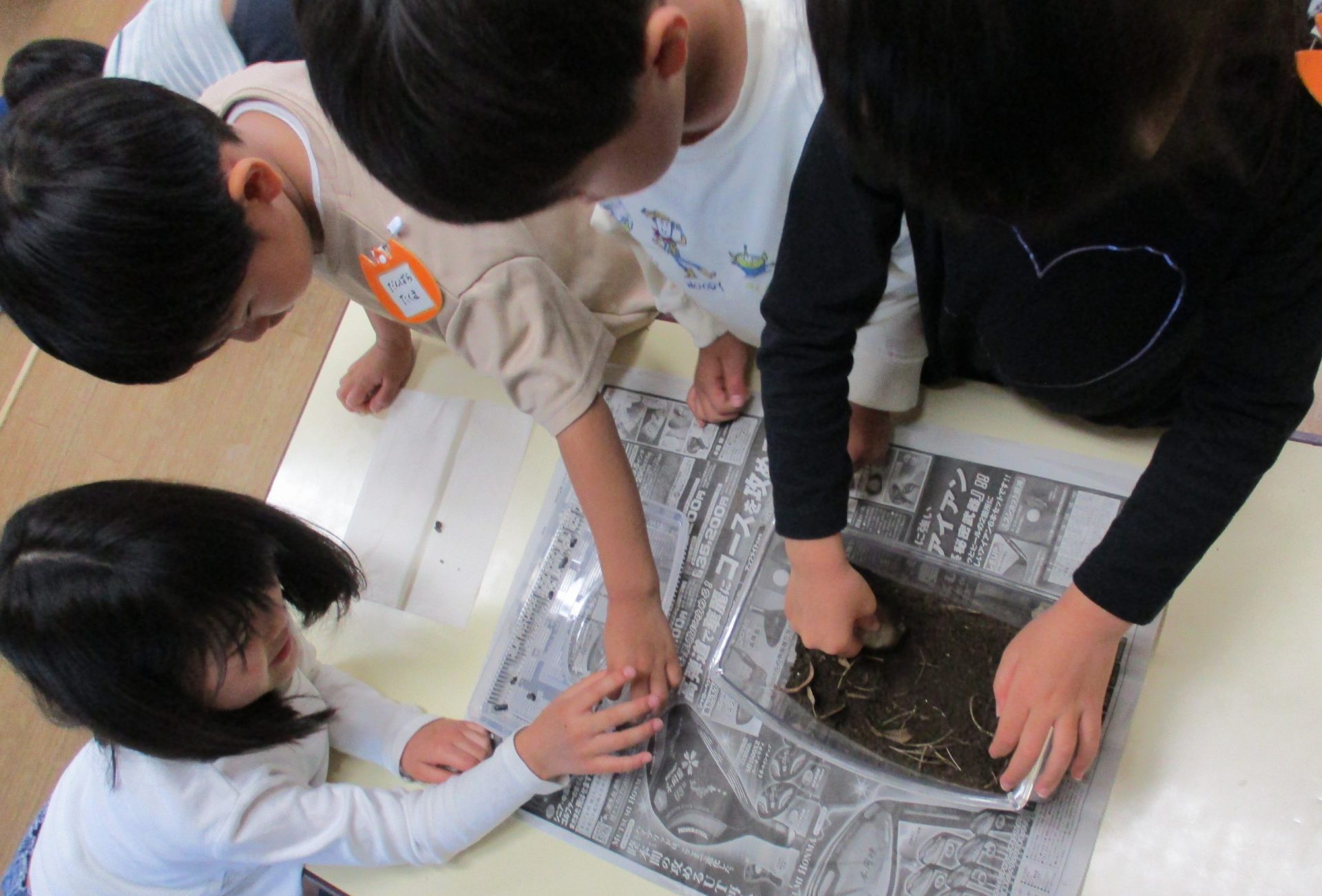 アリ探しから始まり、だんご虫を見つけて飼うことで、じっくりと観察する姿が見られた。