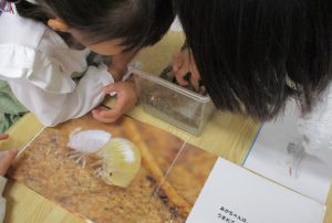 毎日、触れたり観察したりすることで「どんなものを食べるのか」疑問に思ったことを調べようとする姿に繋がった。また実際にクッキーをあげてみることで、絵本の通り、本当に食べてくれた喜びや驚きを友達と共有することができた。