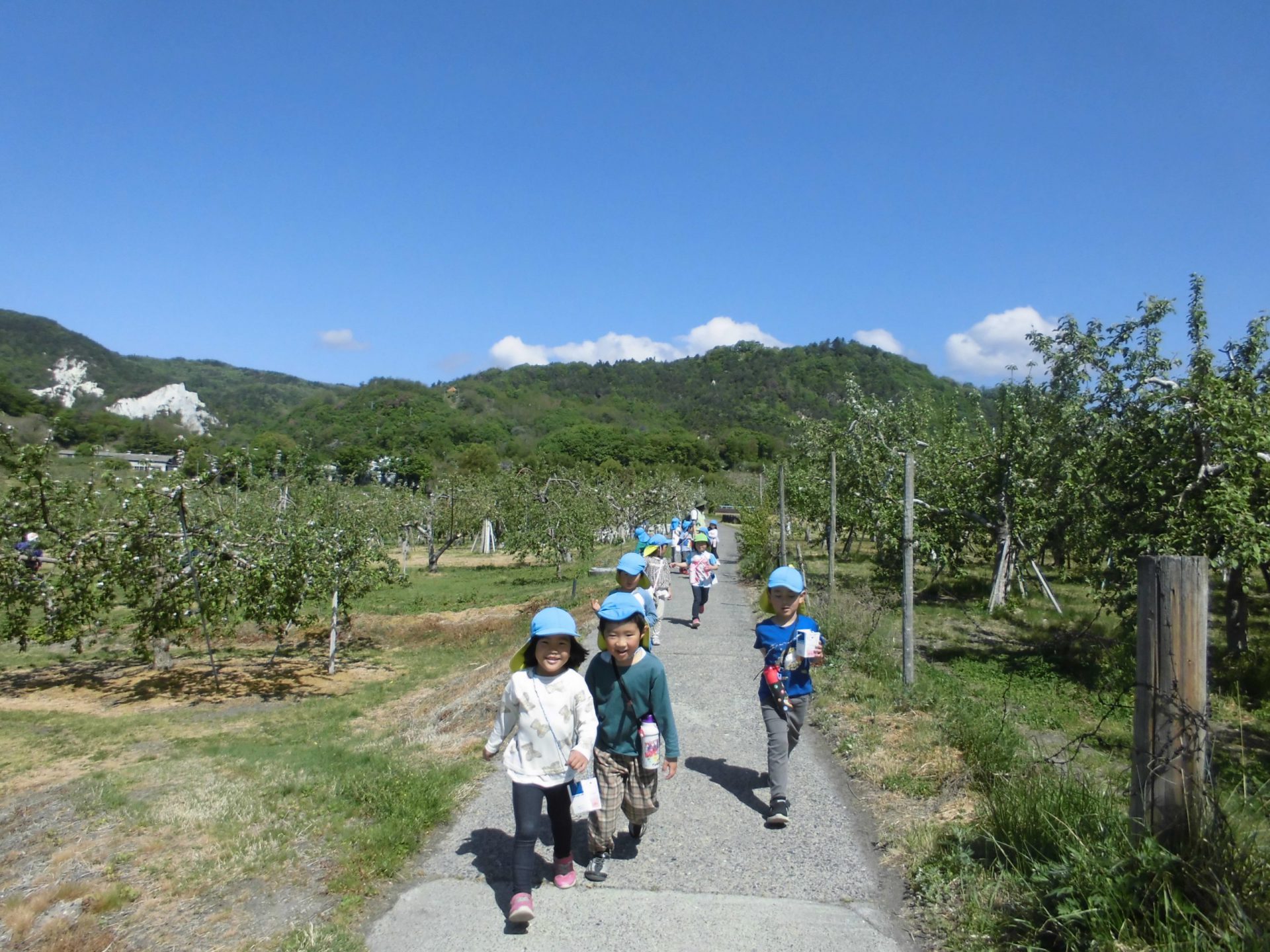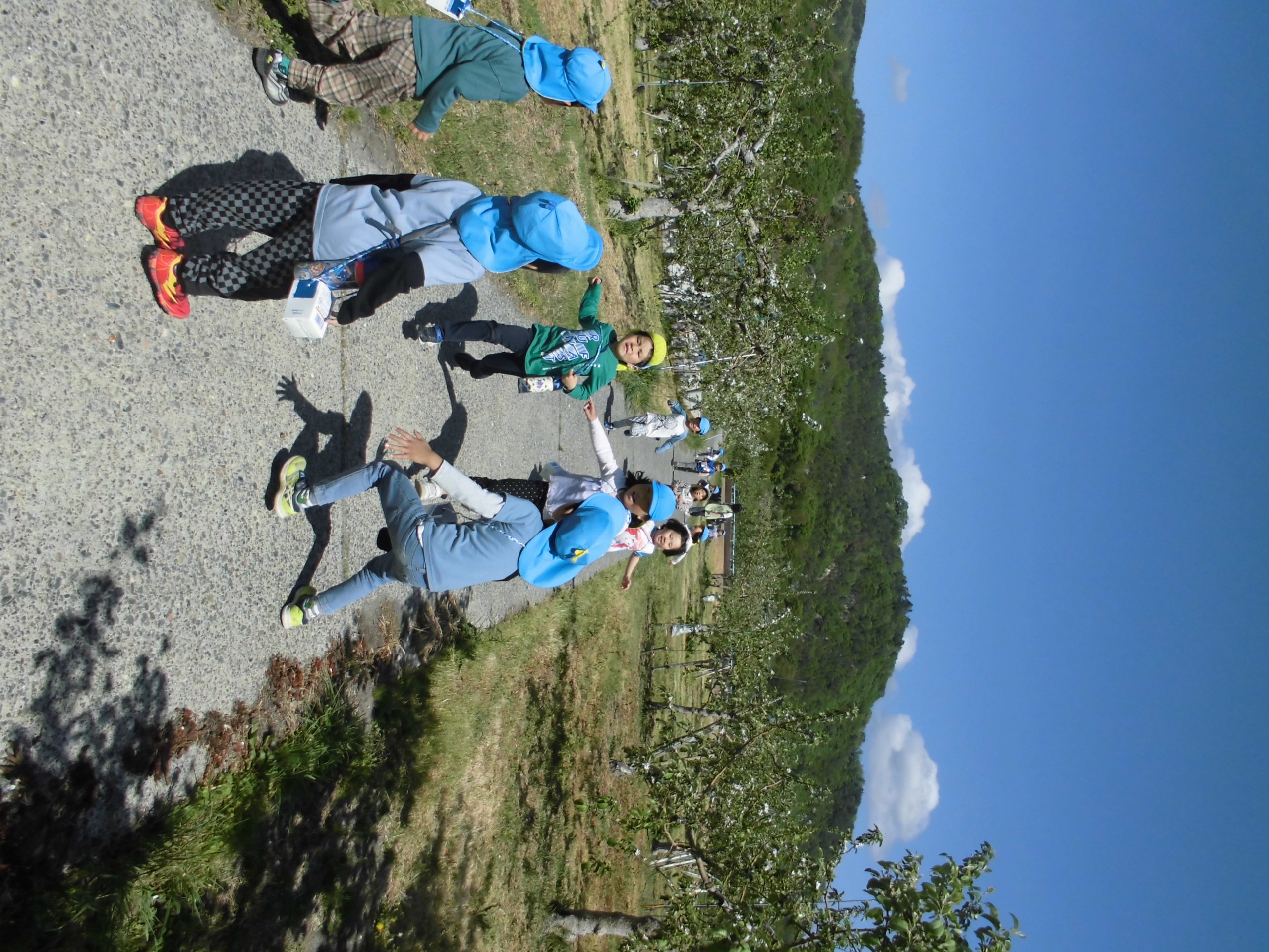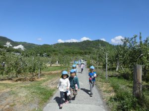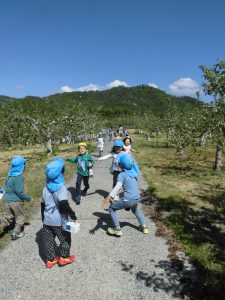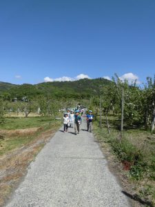 りんご畑の人に「いってらっしゃーい!」と言ってもらいました。