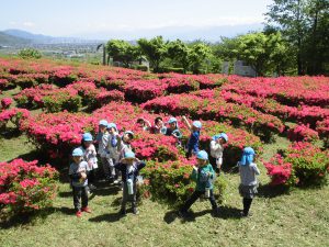 最後はつつじの迷路で、はいチーズ!!