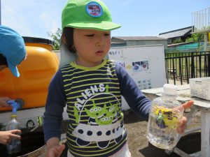 数日すると様子を見ていた年少児もペットボトルを手に取りました。