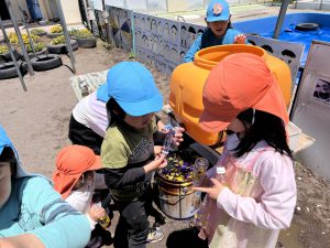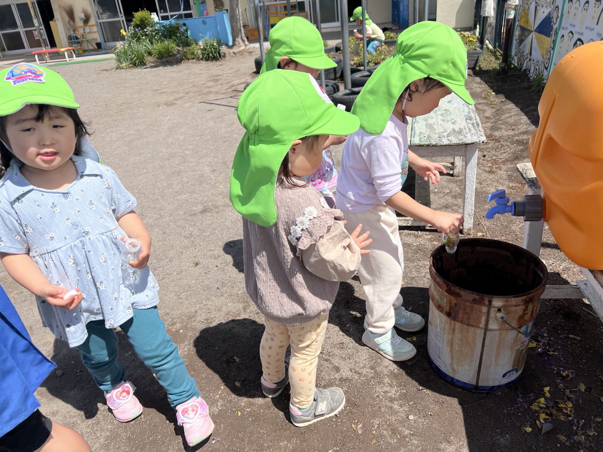 パンジーの花壇ができると「色水していい!?」と子ども達から声が上がりました。