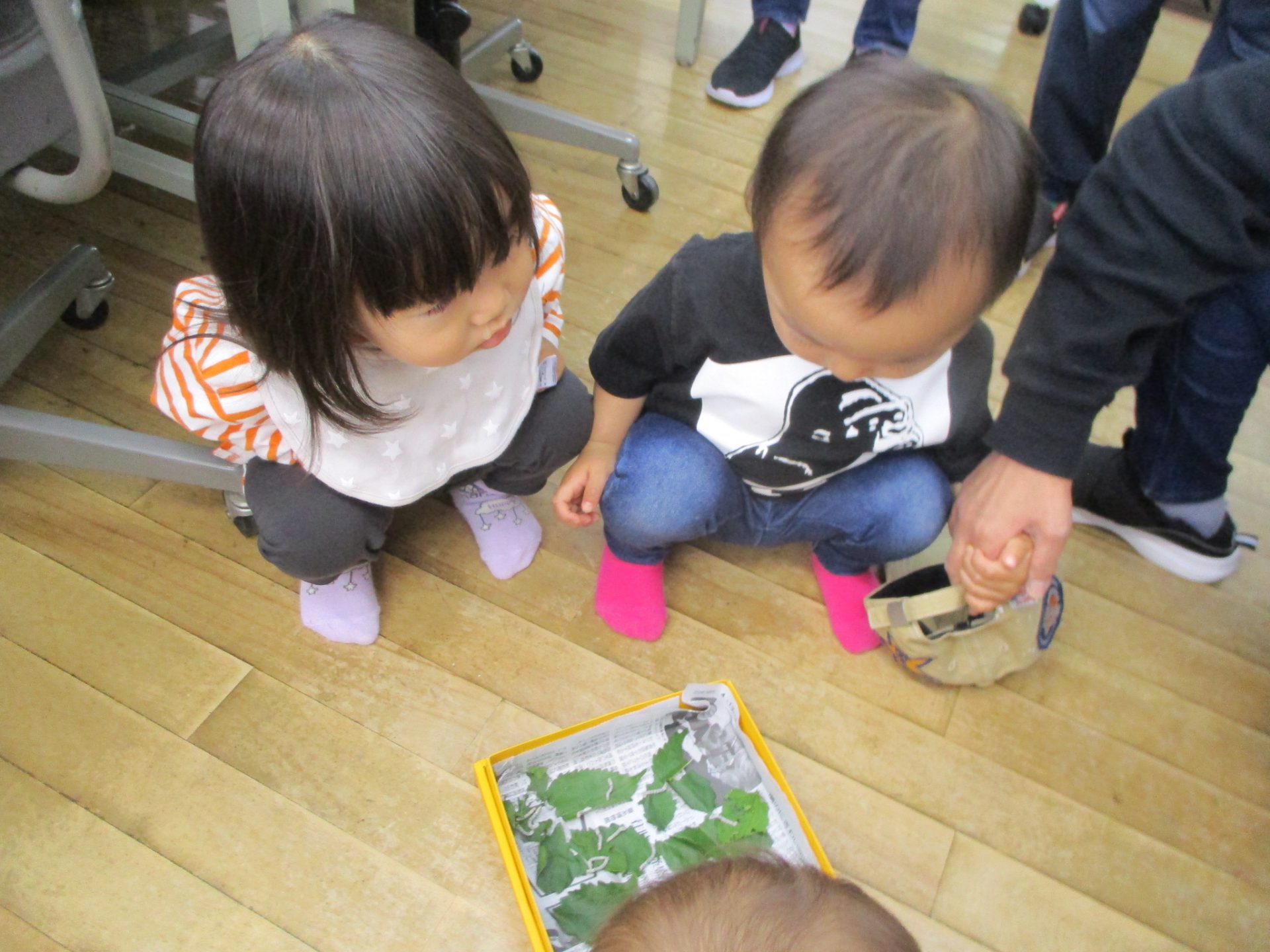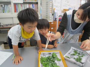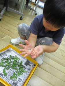 今回は未満児のお友だちが観察しました。これから全園児で観察して成長を見守っていき、いろんなことに気づいてほしいと思います。