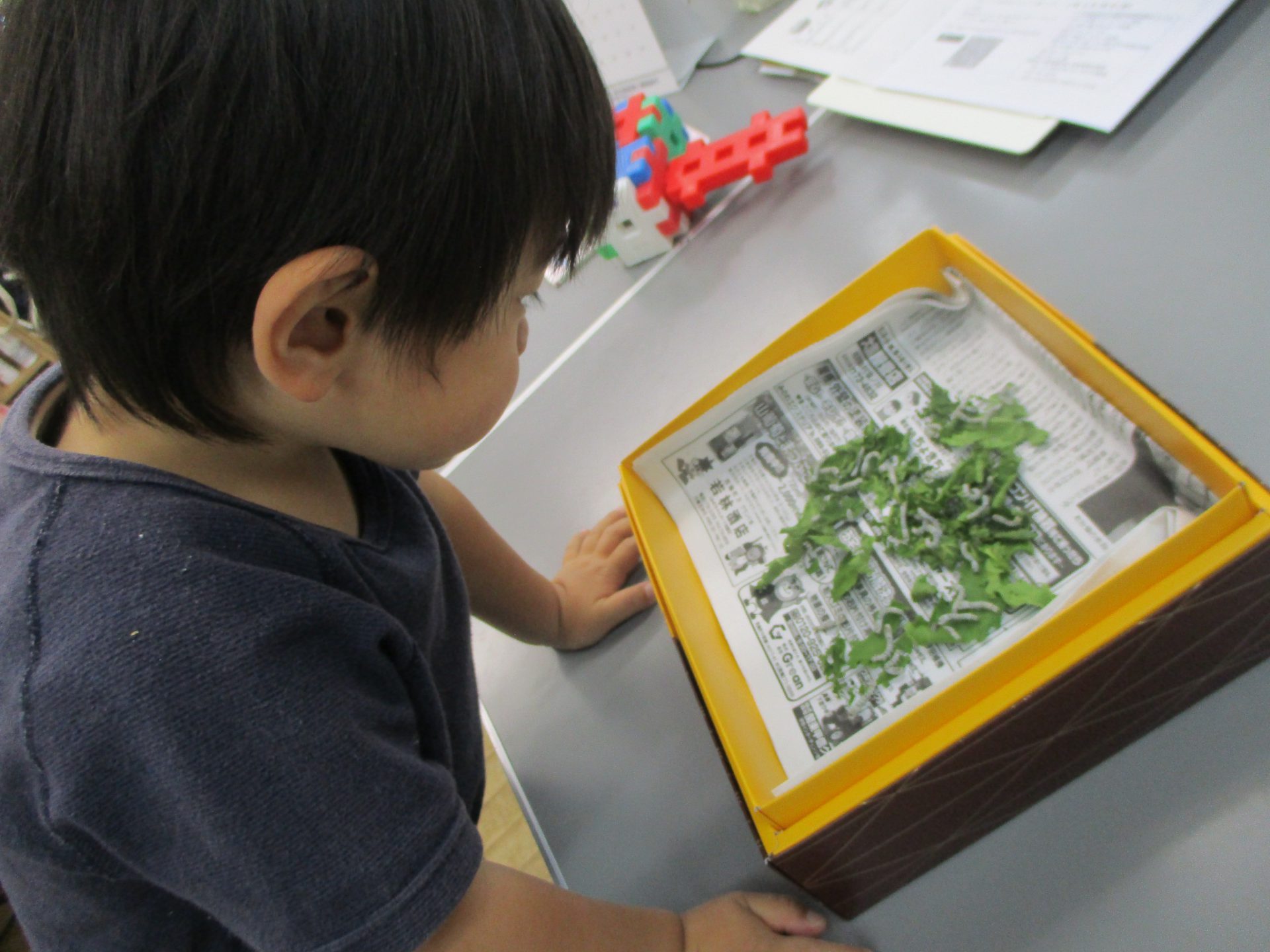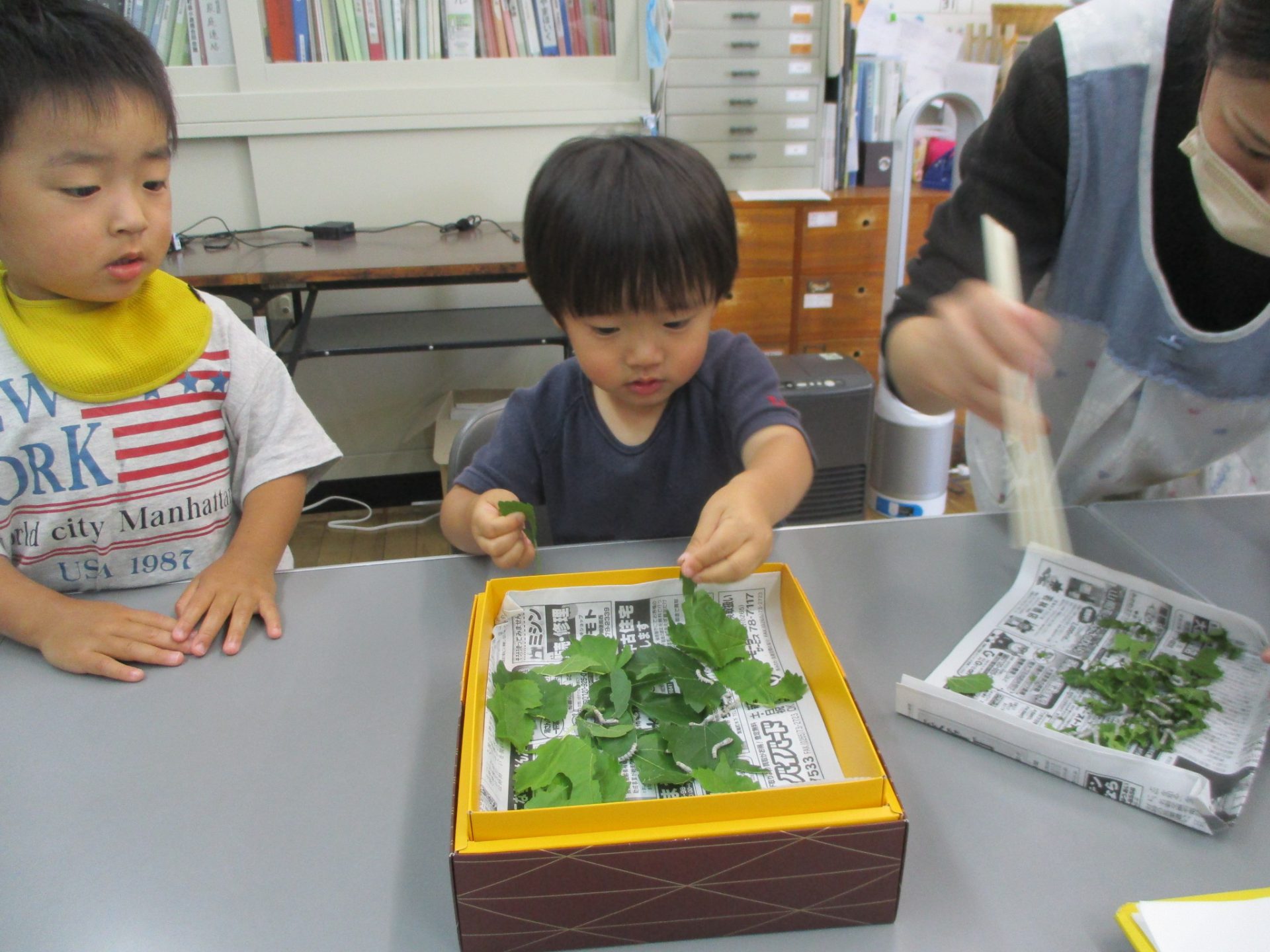 保育園にカイコが来ました。「ちいさ~い」