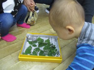 1歳児の子も興味津々。「むし…」