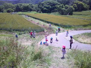 土手に行く途中、田植えの準備をしている地域の方に会いました